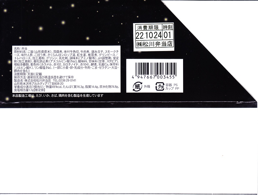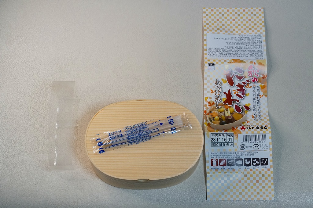 秋冬の駅弁大会シーズンに向けた、2023(令和5)年秋の新商品か。調製元の公式サイトには2020年10月に掲載された痕跡がある。調製元が米沢駅の駅弁屋なのでここに収蔵するが、おそらく米沢駅ではなく東京や催事へ出荷する商品なのだろう。これも千葉駅の駅弁売店で売られていた。