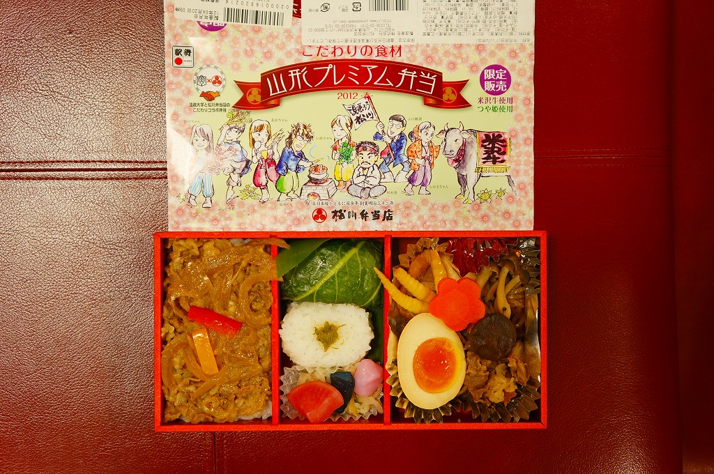 2012(平成24)年11月3日に米沢駅と食品スーパー「ヤオコー」でデビュー。調製元と法政大学経営学部の小川孔輔研究室との共同開発したコラボ弁当の第3弾だという。ただし2012年の発売時と2017年の購入時で、中身の見た目がまったく違う。法政大学のニュースリリースによると、発売時は竹皮編みの容器を使い850円だった模様。