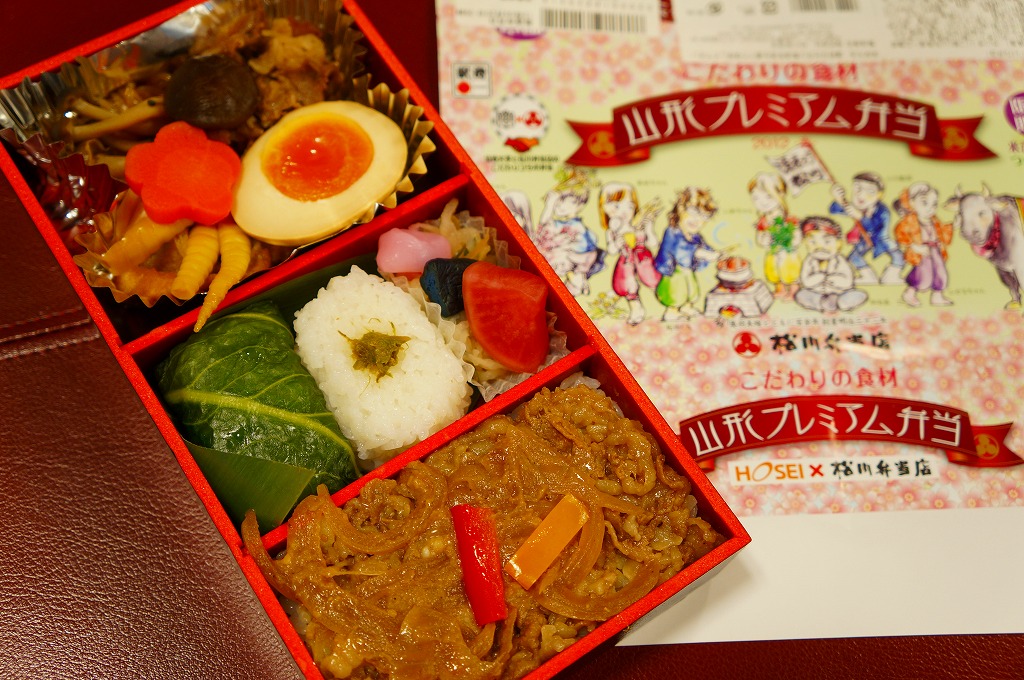 下記の駅弁「山形プレミアム弁当」の第2弾として、2012年春バージョンが、2012(平成24)年2月11日から12日まで東京駅の駅弁売店「駅弁屋旨囲門」で開催された駅弁大会でデビュー。掛紙の絵柄はほぼ同じで、紅葉が桜花に変わり、人が手に持つ食材も差し替えられている。今回の中身は味噌だれの米沢牛焼肉で覆う山形米「つや姫」の白御飯、めはりずし、俵飯、すき焼き、漬け物、玉こんにゃくなど。