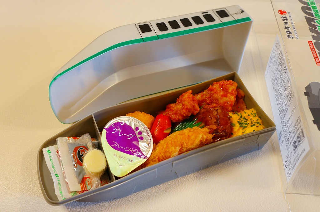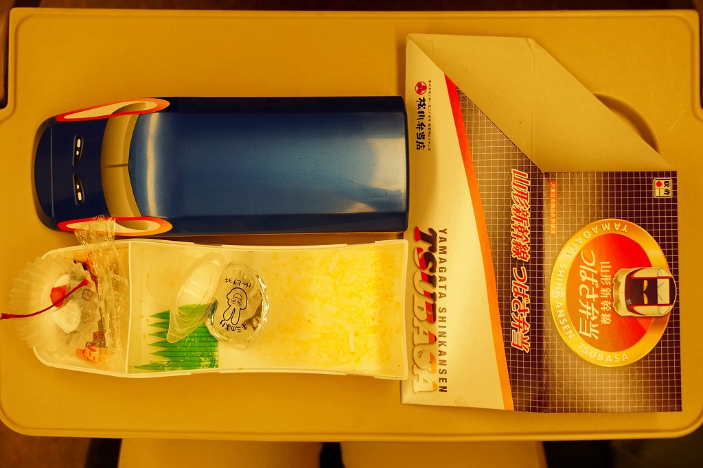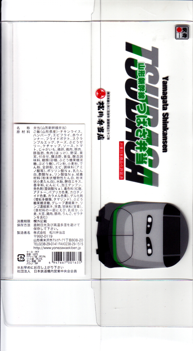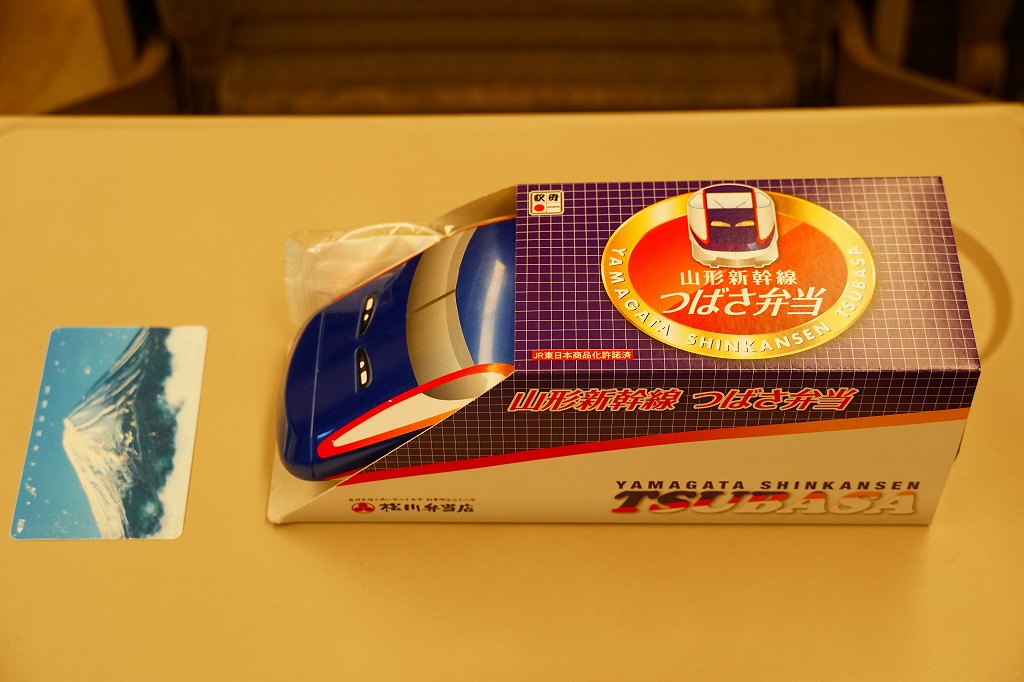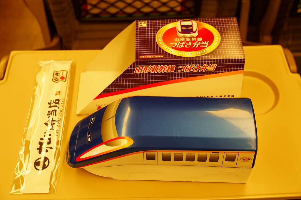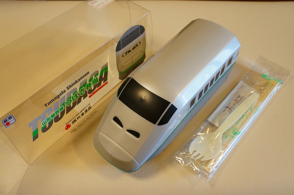 2014(平成26)年の夏までに、下記の駅弁「山形新幹線つばさ弁当」をリニューアル。中身や価格を変えず、実物の車両の塗り替えを反映し、容器の色を変えた。山形新幹線E3系電車の先頭車両を模したプラスティック製の容器にチキンライスを詰め、ハンバーグ、エビフライ、ウインナー、フライドポテト、スクランブルエッグ、鶏唐揚、チーズ、ぶどうゼリーなどを詰める。