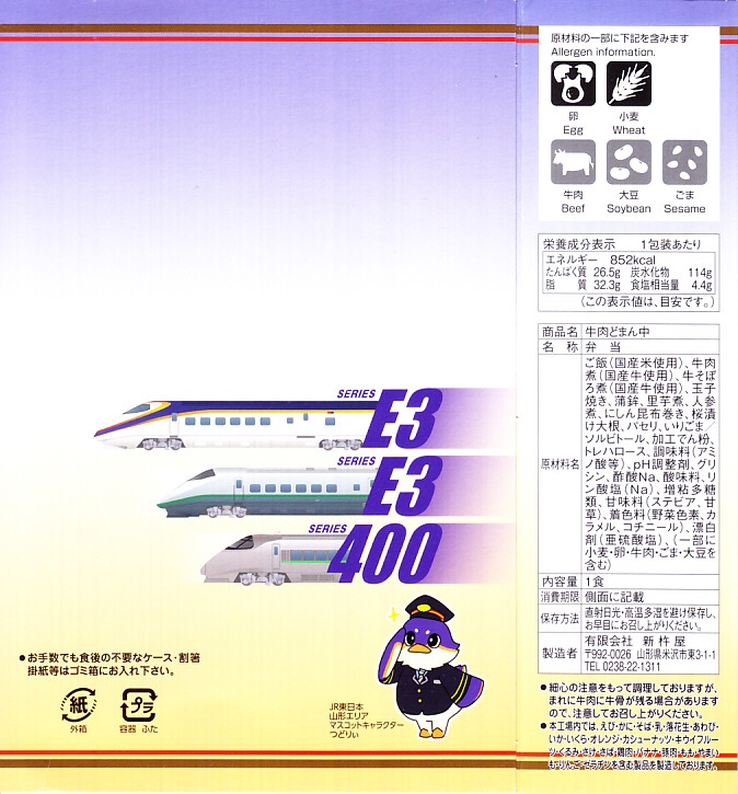 2011(平成23)年の春頃におそらく山形新幹線「つばさ」車内販売向けに発売か。通常版と同じ形で色が黒い容器に透明なふたをして、窓付きの黄色いボール紙枠にはめる。中身は山形米どまんなかの白御飯の上を牛肉煮と牛そぼろで覆い、煮玉子、シイタケ、ニンジン、とうふ、糸こんにゃく、インゲンを載せ、漬物と白玉を添えるもの。