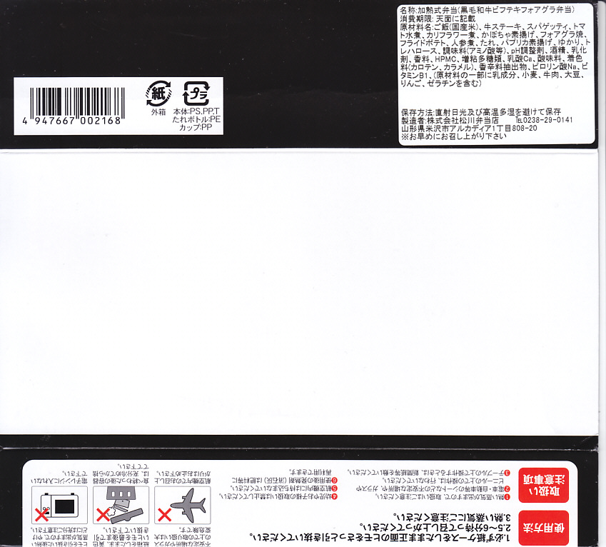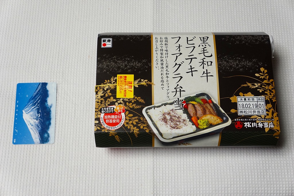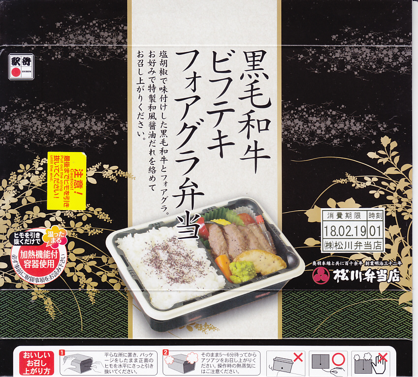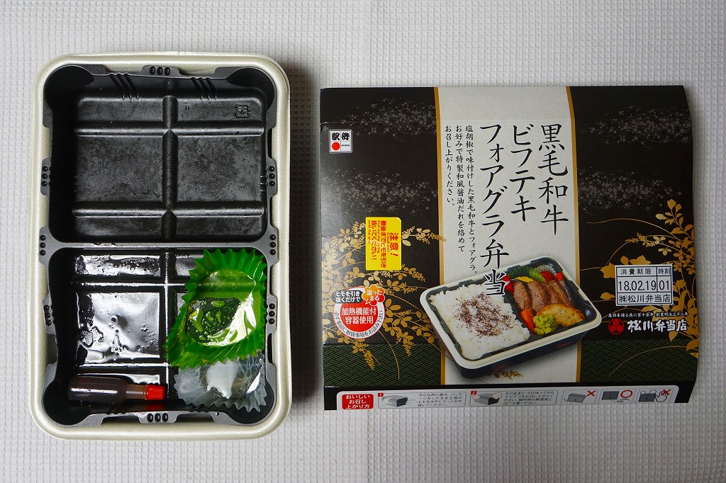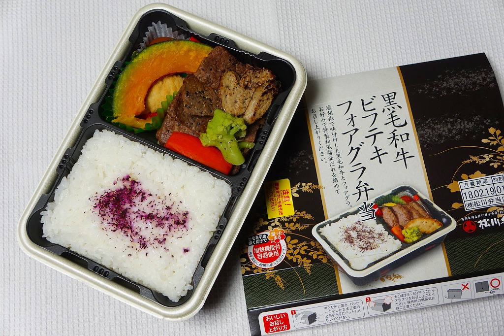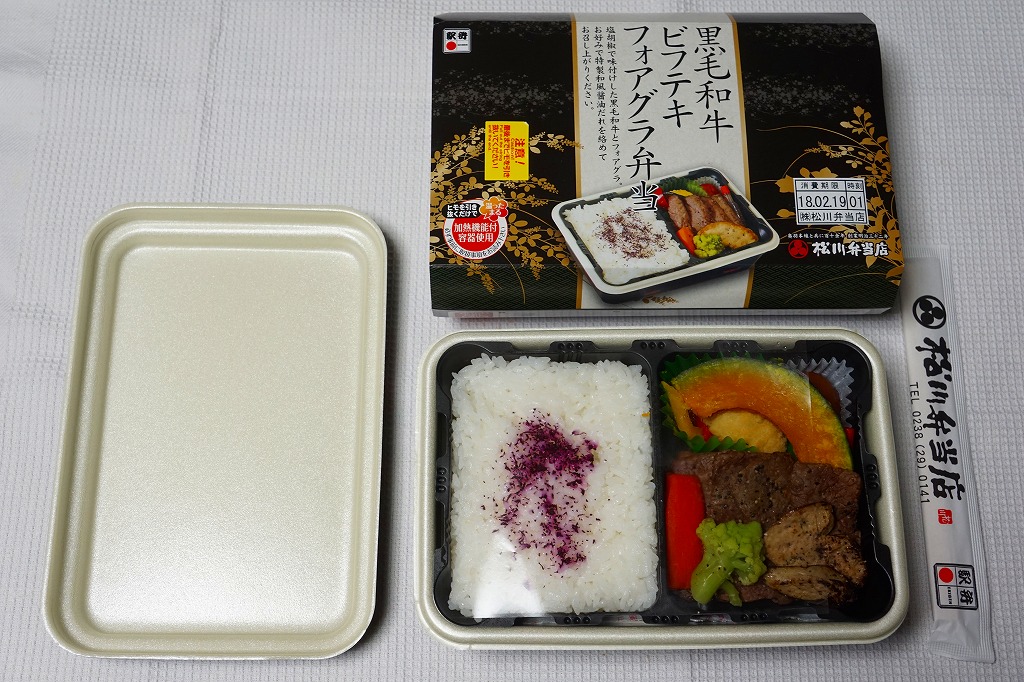 2017(平成29)年の春までには発売の模様。長方形の加熱機能付き容器の、左半分に白飯を詰め、右半分にビフテキとフォアグラ、つまり牛ステーキとフォアグラ焼と、カリフラワー、 ニンジン、カボチャ、スパゲティ、トマト、芋の揚げ物、パプリカを詰める。具の多様と分量で、加熱機能付き駅弁らしからぬ弁当感があり、ステーキもフォアグラも香りと食感が感じられる量が確保されていた。東京以外で買えるかどうかは、わからない。1年間ほどの販売か。