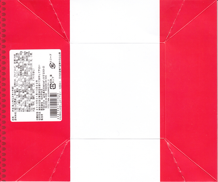 2000(平成12)年の発売か。「牛」と「べこ」は同じものを指すと思うが、商品名の語感は悪くない。円形の加熱機能付き容器を、底面以外は文字だらけのボール紙製パッケージに詰める。中身は白御飯の上に牛角煮スライスやごぼうや舞茸やニンジンなどが、タレで濃く染まり同じような色になりながら載る。