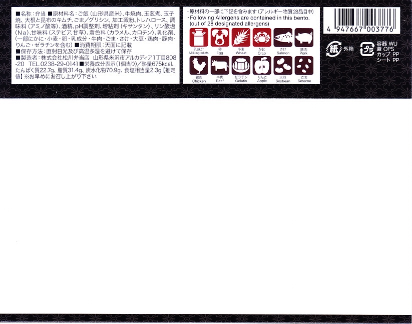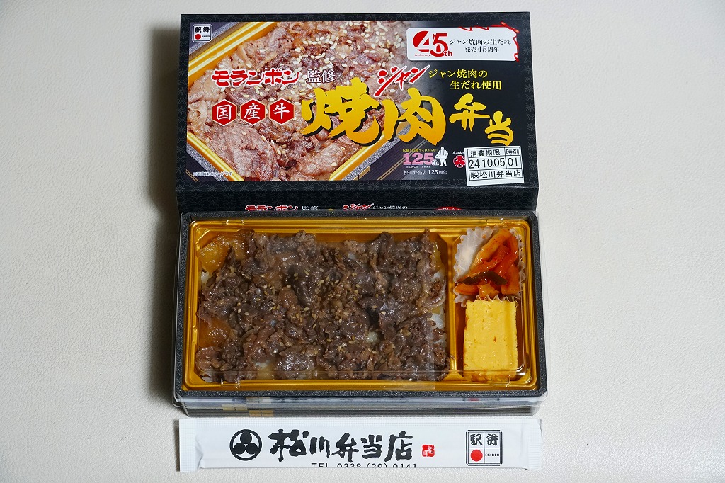 2024(令和6)年10月1日に米沢駅や仙台駅や東京駅などで発売か。同月のJR東日本の駅弁キャンペーン「駅弁味の陣2024」にエントリー。白飯を牛焼肉と玉葱煮で覆い、白ごまを振り、玉子焼とキムチを添える、そんな内容では特徴のない牛肉駅弁。名前からして特徴が何もない。牛肉の味付けに、2024年2月1日で発売45周年を迎えたというモランボンの「ジャン焼肉の生だれ」を使うことが特徴で、中身の写真を使う黒いスリーブでもこの名前が繰り返される。1899年5月15日の米沢駅の開業日から弁当を立ち売りし始めたとする調製元の創業125周年も記される。