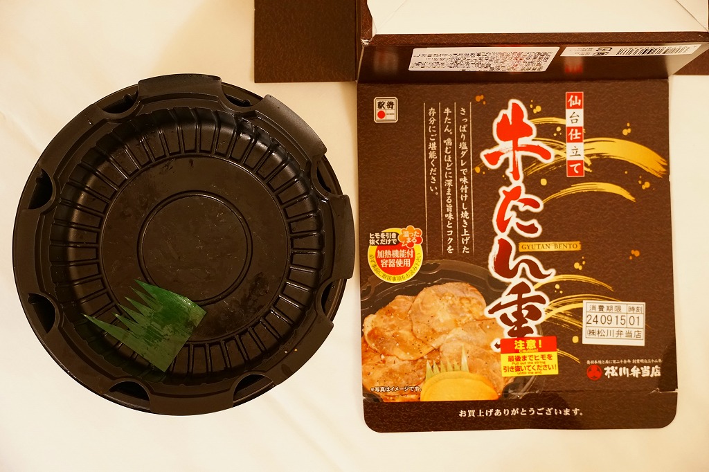 しかし「炭火焼き牛たん弁当」と読める商品名は、牛たん弁当を有名にした仙台駅弁とまったく同じ。こちらは加熱機能付き容器でないが、これはどうなのだろう。2011年までに「網焼き牛たん弁当」と改称し、これもまた仙台駅弁と同じ。価格は2010年の購入時で950円、2012年時点で1,050円、2014年時点で1,100円、2019年時点で1,150円、2022年時点で1,200円。2022年までの設定か。