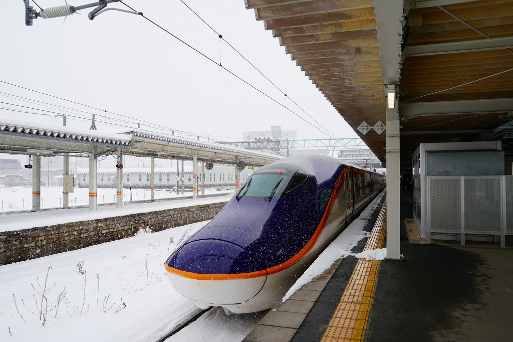 東京駅から新幹線つばさ号で2時間強。米沢市は山形県の南端で内陸の盆地に広がる、人口約8万人の城下町。ブランド和牛の生産や、江戸時代の名君である上杉鷹山でよく知られる。駅弁は明治時代からの駅弁屋と戦後昭和の駅弁屋が激しく競い、無数の牛肉弁当があることになっている。1899(明治32)年5月15日開業、山形県米沢市駅前1丁目。