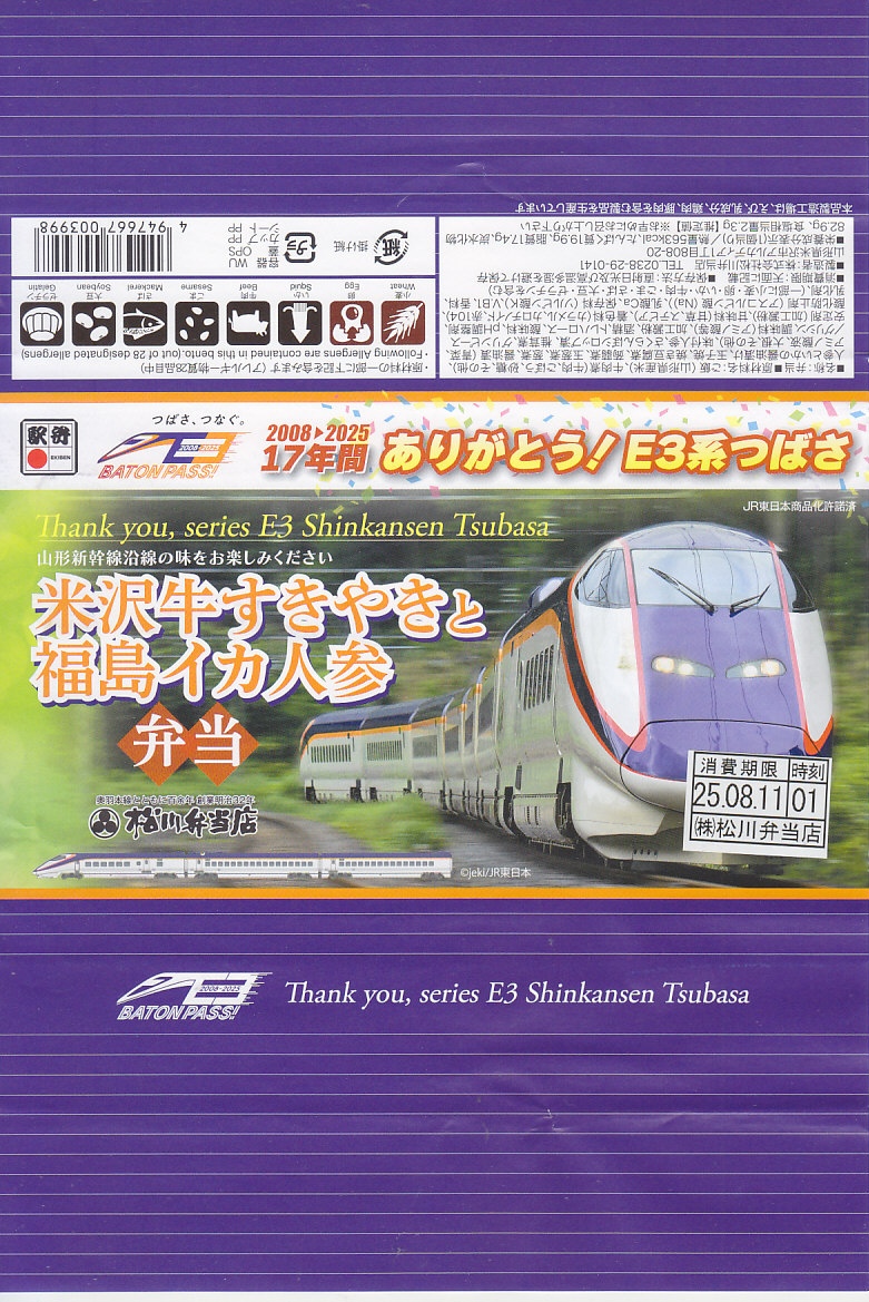2025(令和7)年6月1日に米沢駅や東京駅などで発売か。山形新幹線E3系「つばさ」の2025年内での運行終了にちなみ、JR東日本のキャンペーン「つばさ、つなぐ」の一環で発売。掛紙にはそのキャンペーンのロゴマークと、中身とE3系新幹線電車の写真が使われる。