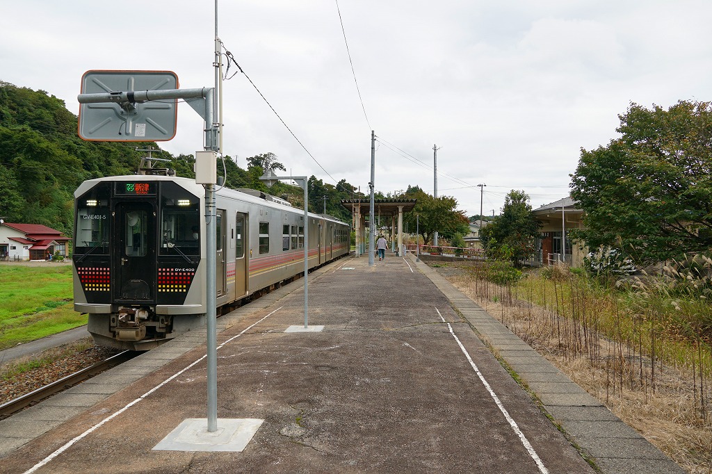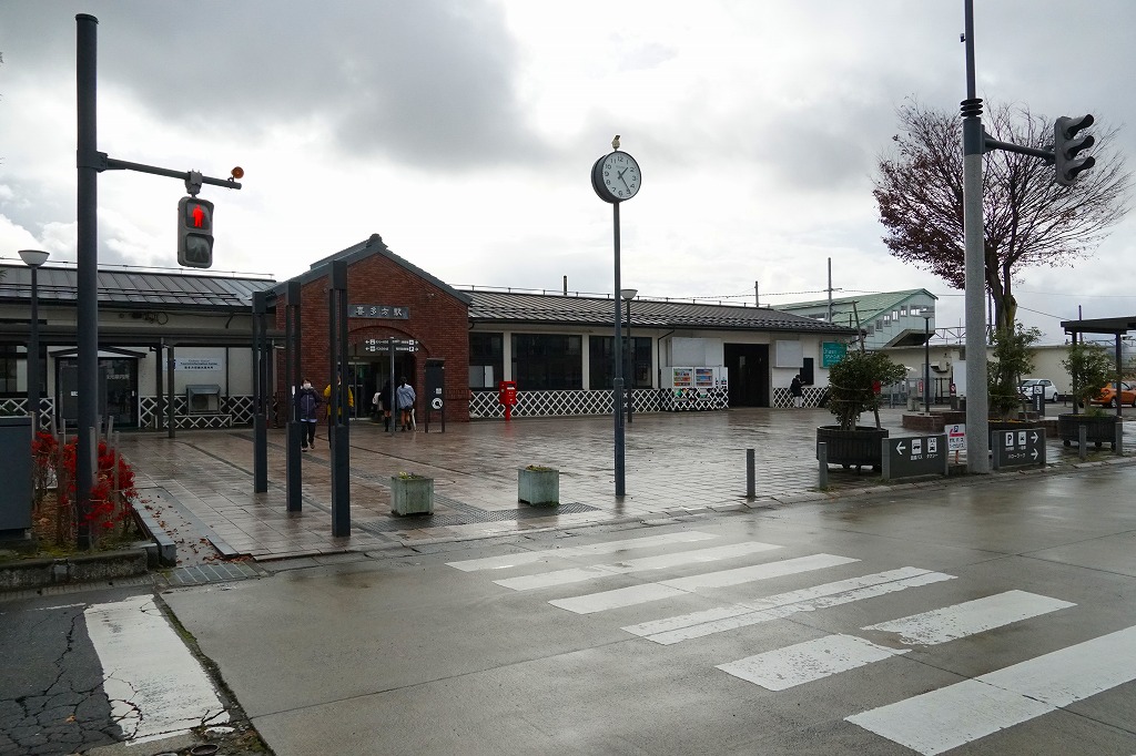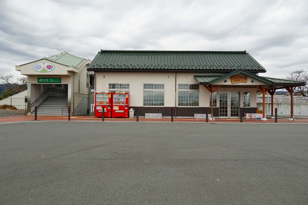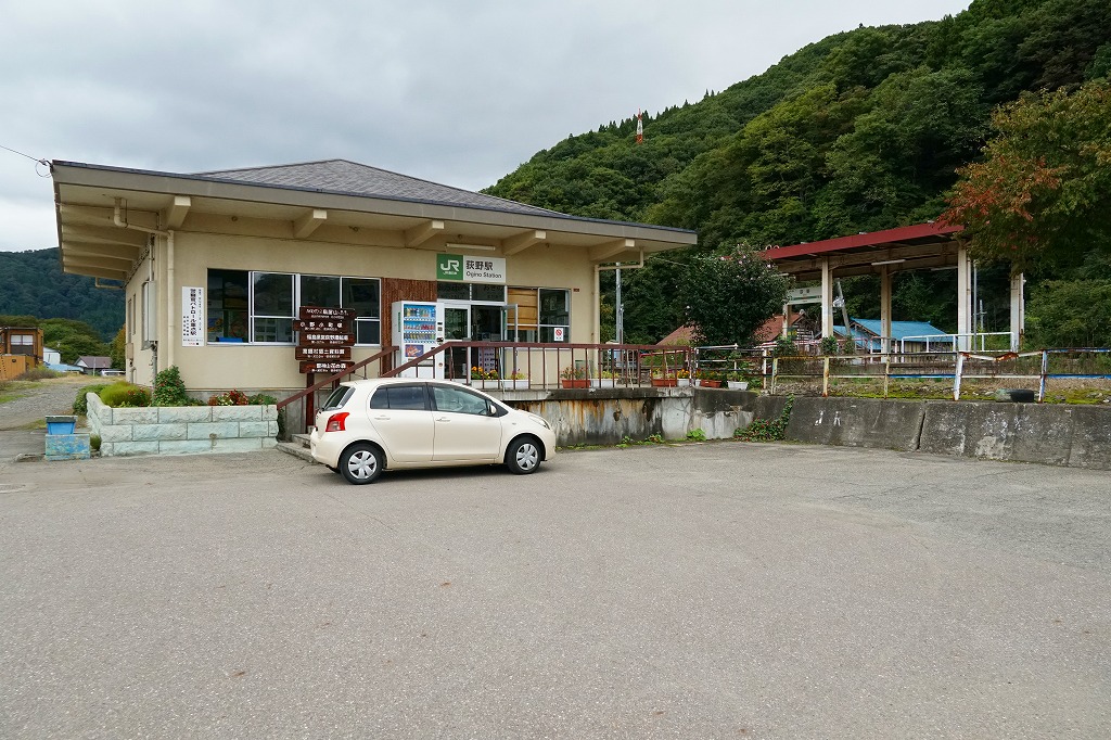 会津若松駅から磐越西線の列車で40分前後。阿賀野川に面した荻野は、1000万年前の海の生き物の化石が出土し、旧石器時代の遺跡があり、江戸時代には漆や蝋や和紙の産業があり、新郷ダムの完成で発電と漕艇が行われる、2006年に喜多方市へ吸収されるまで単独で村制を敷いた高郷村の玄関口。荻野駅では1920年代に駅弁が売られた可能性がある。1914(大正3)年11月1日開業、福島県喜多方市高郷町上郷字馬場頭。