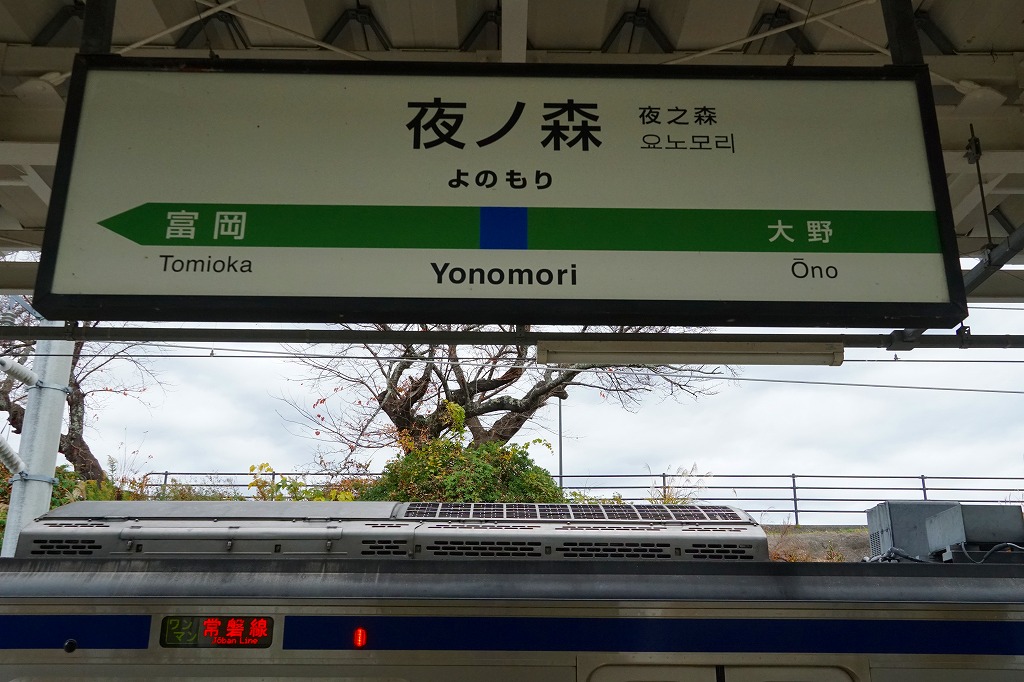 富岡駅から常磐線の電車で1駅4分。駅周辺は住宅地で、駅前の桜並木と駅のツツジで知られたが、2011年の大震災と原発事故により駅周辺が6年間、駅が9年間使われなかったことでなくなった。市販の鉄道時刻表によると1921年に駅弁販売駅だったという。1921(大正10)年3月15日開業、福島県双葉郡富岡町大字本岡字新夜ノ森。
