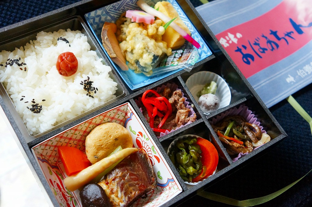 公式には「まるで山里の家庭料理をおばあちゃんが作ってくれるような、自分の田舎に帰った気分になる松花堂風の会津らしいお弁当」だそうな。ボール紙で模した器の絵柄も含め、旅館の昔懐かしい和朝食。価格は2013年の購入時で1,000円、2017年時点で1,100円。調製元が支店を閉めたため、2020年の夏頃に終売。