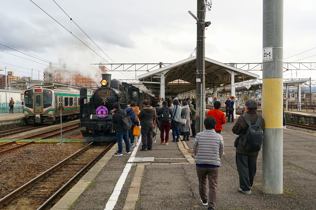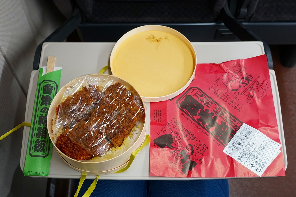 東京駅から東北新幹線と磐越西線を乗り継いで約3時間。会津若松市は福島県西部の会津地方の中心である、人口約11万人の城下町。鶴ヶ城や城下町、東山や芦ノ牧などの温泉、白虎隊その他明治維新前後の史跡などで、年間で約300万人もの観光客を集める。駅弁は明治時代からの駅弁屋が1960年前後に撤退、仙台駅弁の支店が出たが2005年に撤退、代わりに進出の地元業者も2008年に撤退、仙台駅弁の郡山支店が再進出するも2020年に撤退、同年10月から郡山駅の駅弁が電車で運ばれる。1899(明治32)年7月15日開業、福島県会津若松市駅前町。