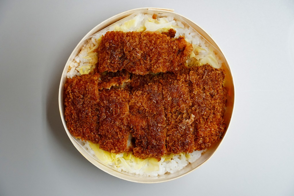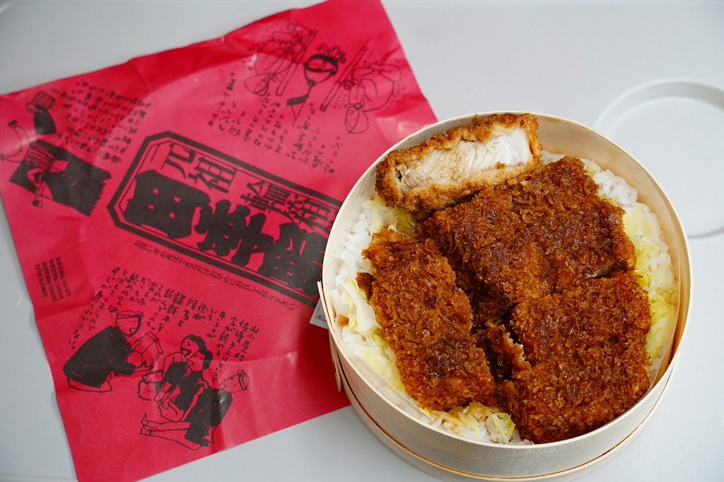 会津若松駅で駅弁も売るコンビニ「ニューデイズ」で、2023(令和5)の秋までに発売か。商品名は食品表示ラベルでは「ソースカツわっぱ」とある。おそらく調製元で汎用の赤い掛紙をかけた、木製で円形の容器に、プラ製の上げ底を仕込み、白飯を詰めて、キャベツの千切りを軽く敷き、ロースかつのソース漬けをカットして並べる。そんな内容と甘いソースで、会津では標準的なソースカツ丼にみえる。値段は標準より3割くらい高い気がするが、会津あるいは福島県内からこの内容の駅弁は消えており、存在するだけで価値があると思う。調製元の食堂のメニューには、カツ丼は見あたらない。