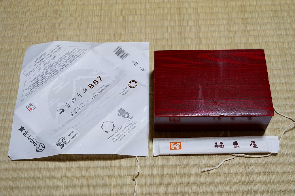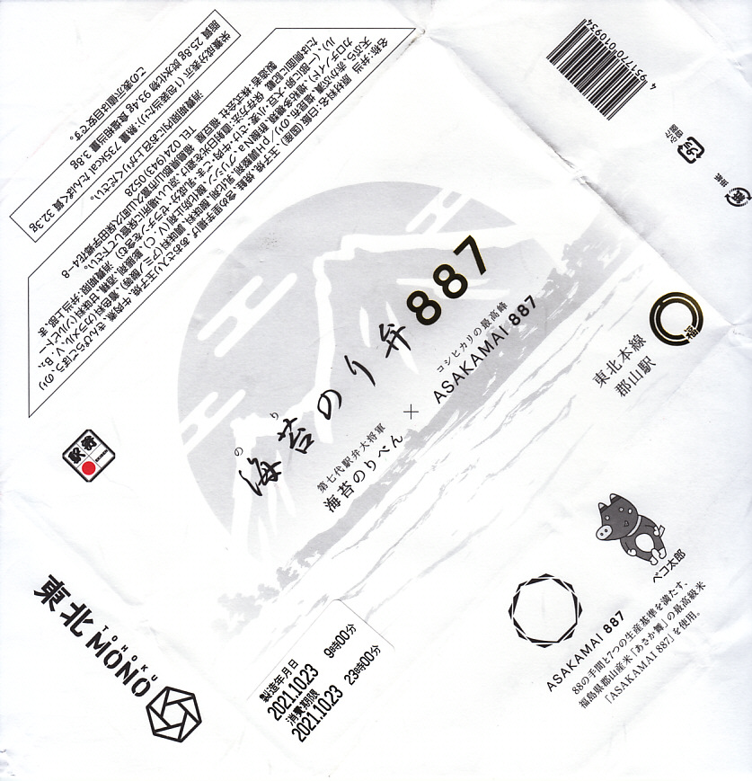 2021年4月から9月までのJRグループの観光キャンペーン「東北デスティネーションキャンペーン」の開催に合わせ、2021(令和3)年4月1日に東京、郡山、福島、新白河、会津若松の各駅で発売。郡山駅を代表する駅弁「海苔のりべん」の新バージョンで、福島県郡山市産「あさか舞」の最高級米「ASAKAMAI887(アサカマイハチハチナナ)」を使い、その数字を駅弁の名前に取り入れた。漆器の木目を印刷した長方形の容器を、「海苔のりべん」のものとは対称的に落ち着いた文字や絵柄やアイコンで構成し、887の文字と調製元の新ロゴマークが金色に光る白い掛紙で包む。