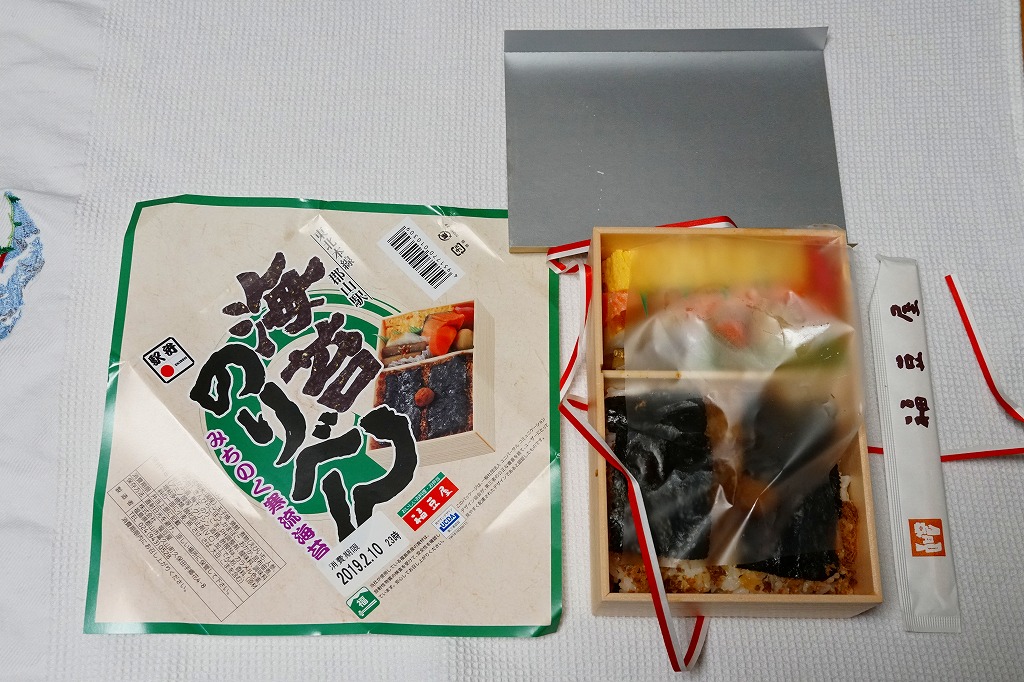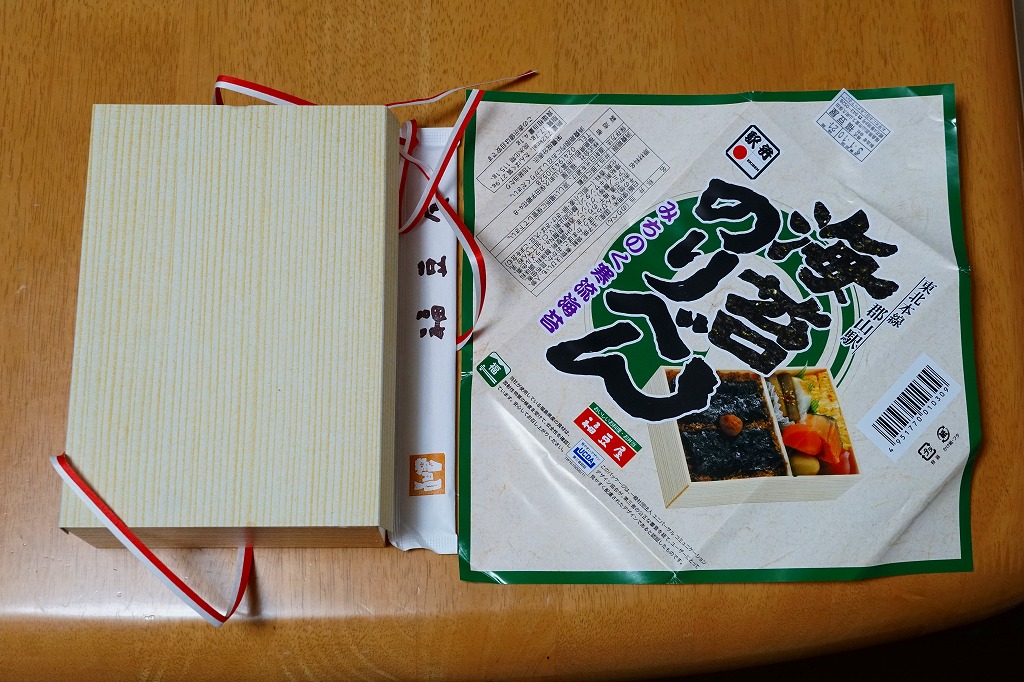 2021(令和3)年1月10日に購入した、郡山駅弁の掛紙。法令の強化で食品表示の文字数が増えた以外は、2年前と変わらない。