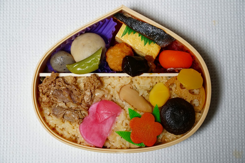 古典的な栗駅弁と同じような栗型の容器を使用、宣伝の文字が賑やかな栗色で栗型のスリーブに収める。中身は山菜御飯を栗や牛肉や煮物で覆い、焼鮭や玉子焼やまた煮物を添えるもの。中身にクリは山菜飯に2個乗せた小片だけなので、全然栗飯っぽくなし。煮物だらけで秋でもなし。おいしくて賑やかな五目駅弁ないし釜飯風駅弁だった。2022年秋冬の駅弁大会シーズンまで出荷された模様。