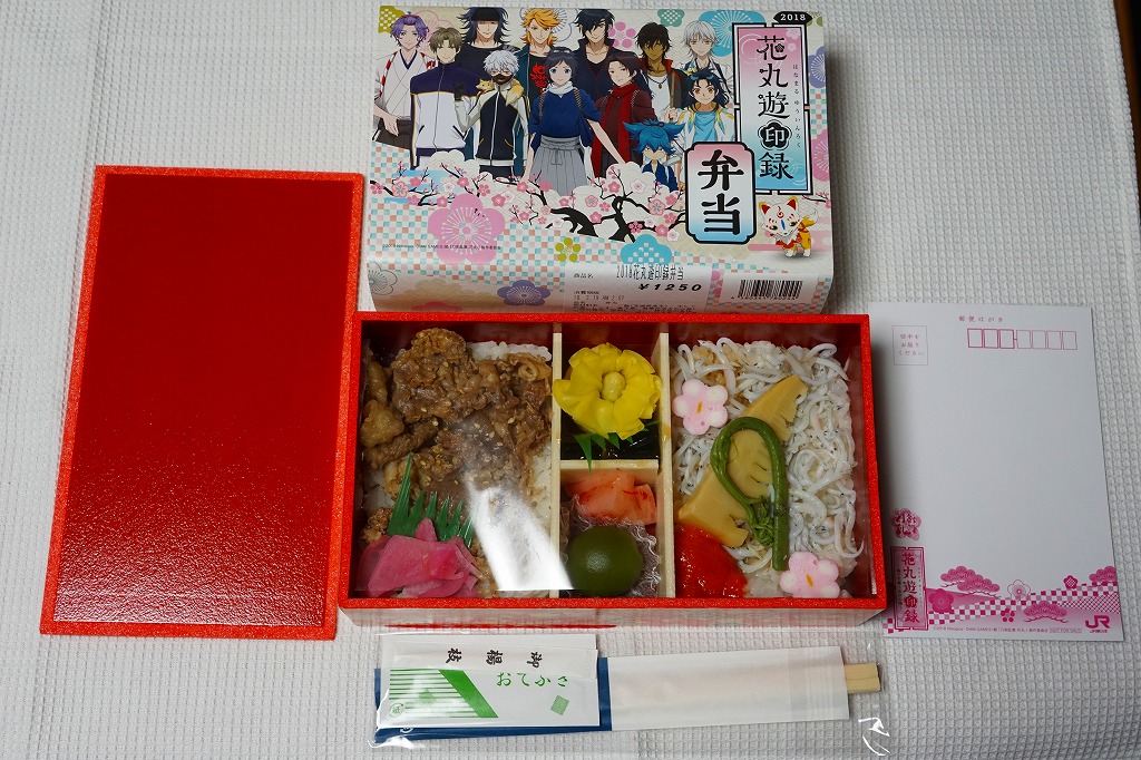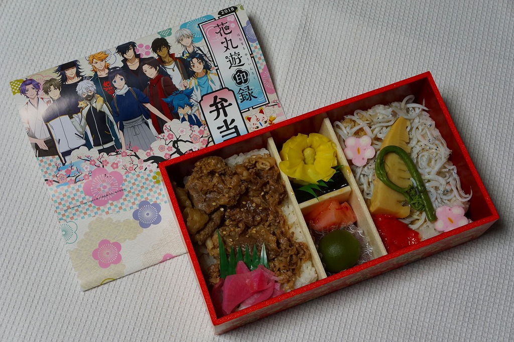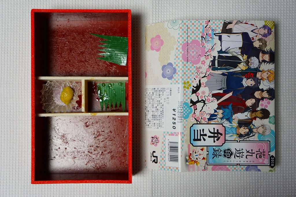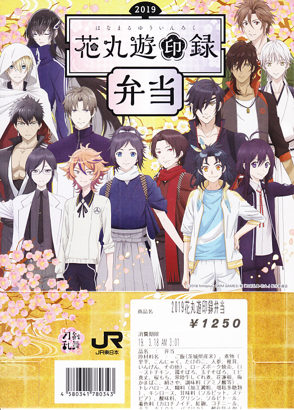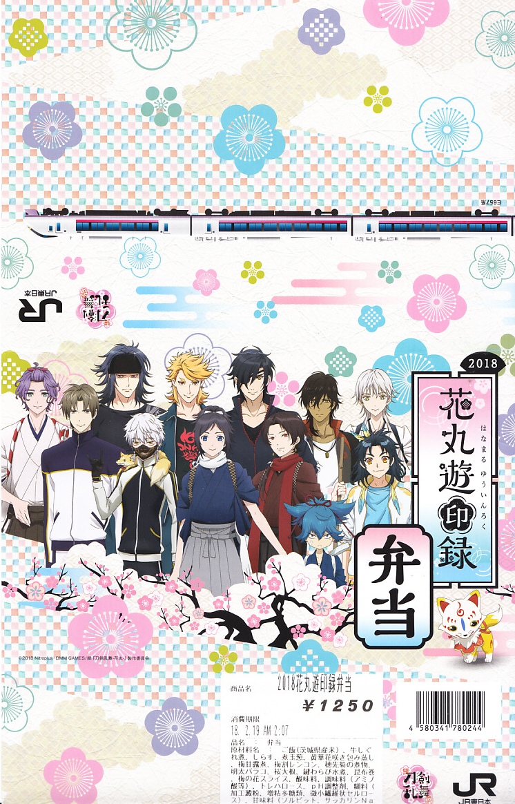 前年に続き、2018(平成30)年2月17日から3月25日まで、水戸駅と東京、品川、新宿、上野の各駅で販売。DMMのオンラインゲーム「刀剣乱舞」と、これを原作としたテレビアニメ「刀剣乱舞−花丸−」と、JR東日本水戸支社とのタイアップによる、偕楽園での「水戸の梅まつり」開催期間中に実施するスタンプラリーの期間中に販売された記念駅弁。掛紙の絵柄はもちろん、ゲームやアニメのキャラクターでできている。