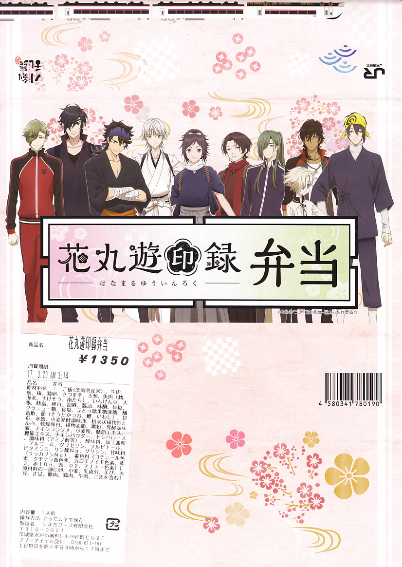 2017(平成29)年2月18日から3月26日まで、水戸駅と東京、新宿、上野、大宮の各駅で販売。DMMのオンラインゲーム「刀剣乱舞」と、これを原作としたテレビアニメ「刀剣乱舞−花丸−」と、JR東日本水戸支社とのタイアップによる、偕楽園での「水戸の梅まつり」開催期間中に実施するスタンプラリーの期間中に販売された記念駅弁。掛紙の絵柄はもちろん、ゲームやアニメのキャラクターでできている。