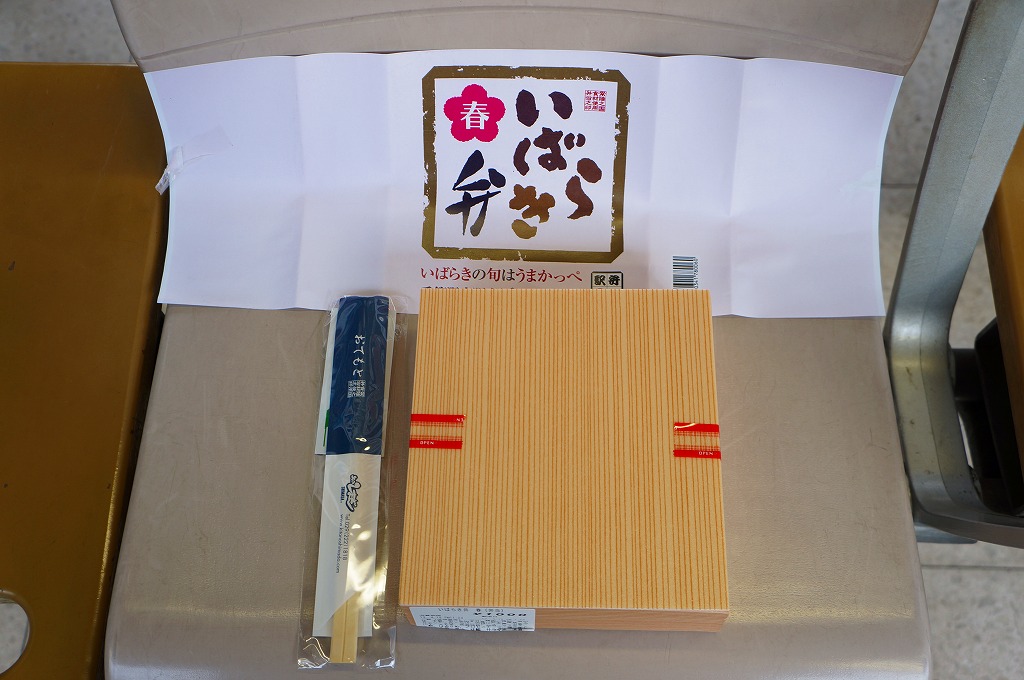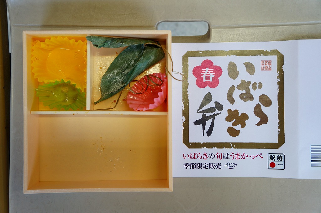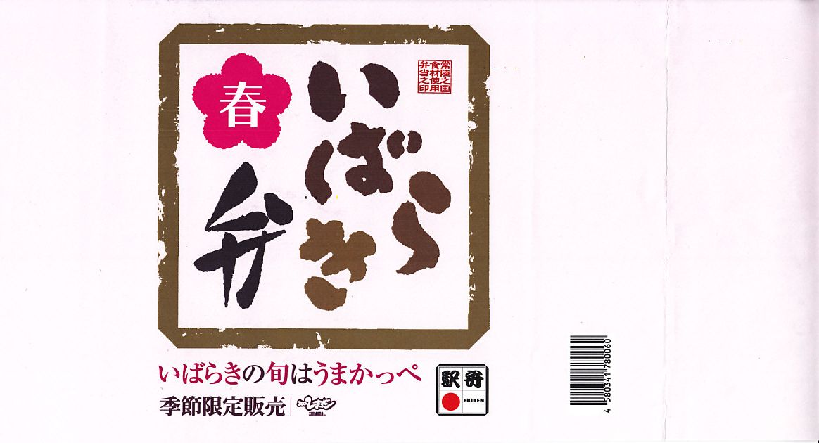 2013(平成25)年4月1日から6月初旬まで販売された新作駅弁で、前年の9月22日から12月2日まで販売された「いばらき弁 秋」の春バージョン。中身はタケノコ御飯に鶏梅しそ巻、鶏ささみの梅しそフライ、鶏つくねやシイタケなどの炊合せ、シメジ蕗味噌和え、花揚げ、梅しんじょう、ブリ照焼、玉子焼、菜の花、ちまき餅。梅と県産のタケノコで多くを固める茨城の味であり、確かな春のお弁当。10月には「秋」も出たが、この年のみ、または2014年までの販売か。