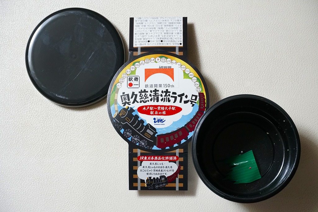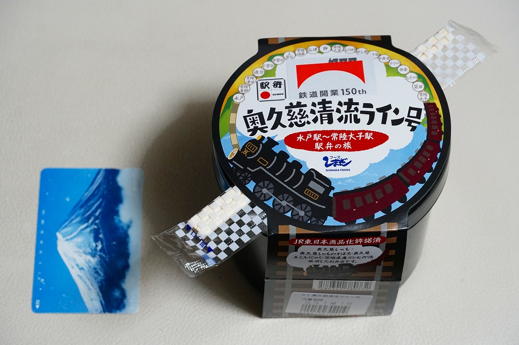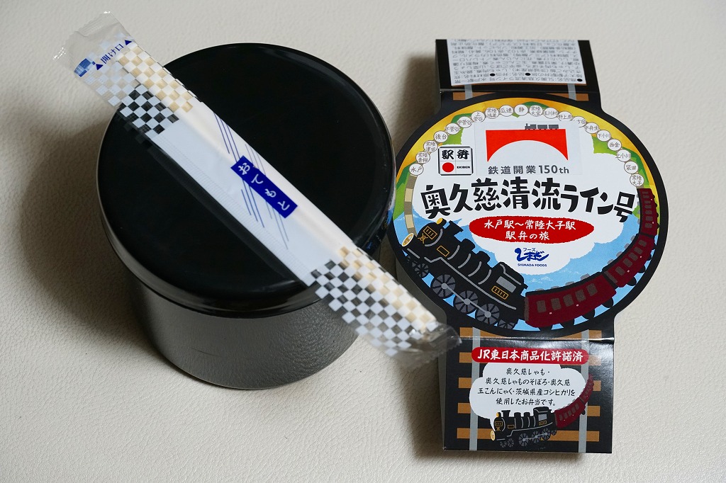 奥久慈清流ラインは、茨城県と福島県が公募により2011年8月に決めた、JR水郡線に対する路線愛称。市販の鉄道時刻表にも記載されるほか、以後に水郡線で運転された臨時快速列車やSL列車の名前にも付いた。最近5年間はあまりそんなことがなく、スリーブに描かれるような蒸気機関車が走ったのは2014年12月が最後であるが、なぜか不思議とこのタイミングで、まるでSL弁当のような駅弁が出てきた。