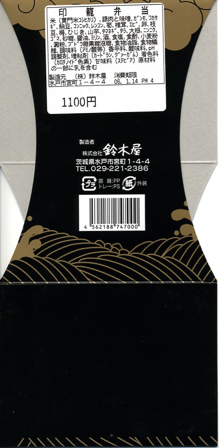 印籠弁当につきましては、創業120年水戸の老舗として有名