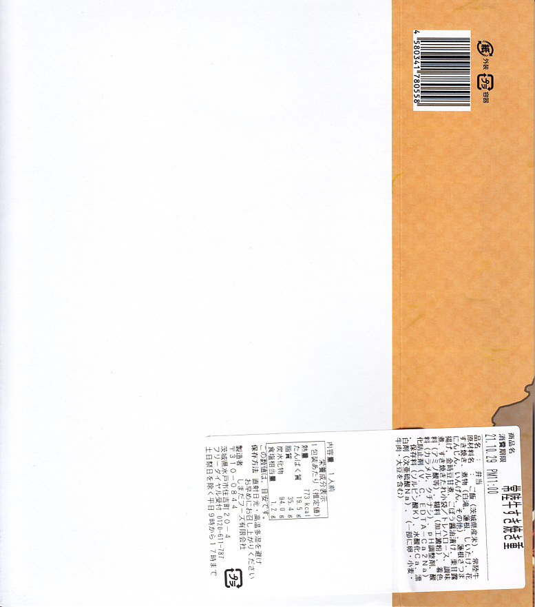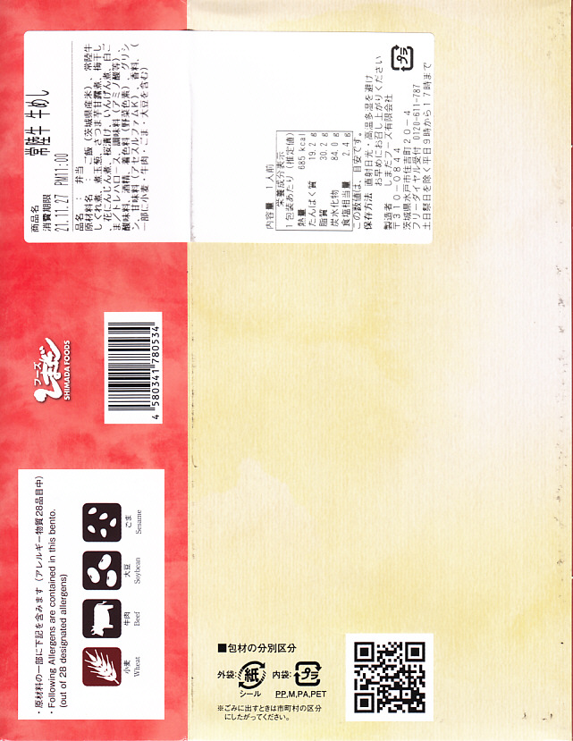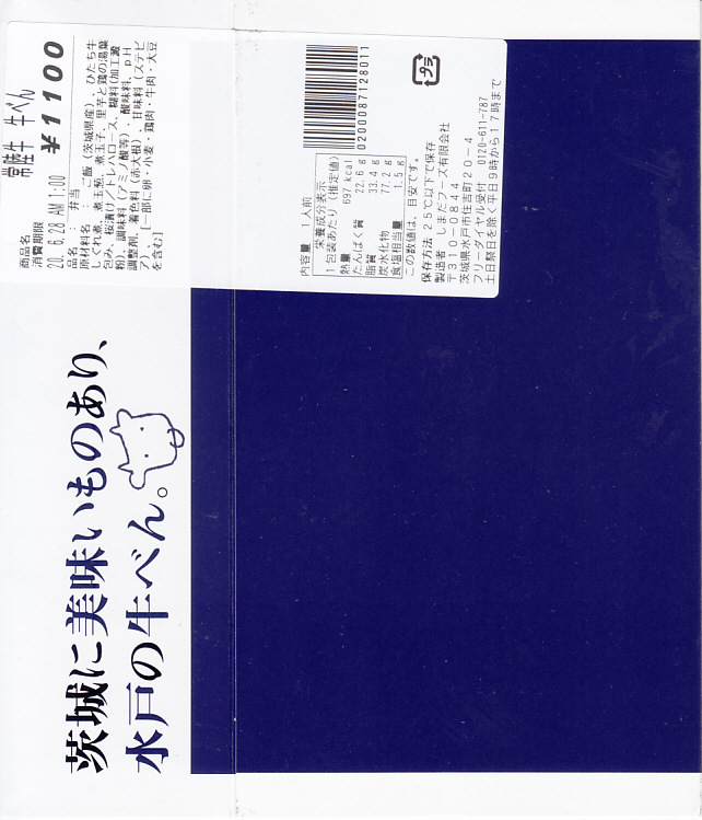 秋冬の駅弁大会シーズンに向けた、2021(令和3)年9月の新商品か。四角い容器に白飯を詰め、牛肉煮で覆い、いんげんと大根桜漬とニンジンで彩り、梅干しとサツマイモを添える。既存の水戸駅弁「牛べん」と、中身はほぼ同じで、容器と値段はまったく同じ。味は「牛べん」でなく、全国各地の催事向け牛肉駅弁に似た、特徴のない感じ。このページにあるとおり、いくつもの牛肉駅弁がある中で、なぜこれを出したのか、不思議に思うところ。京王百貨店の地下食品売り場でしか売られない商品かもしれない。このシーズンで終売か。