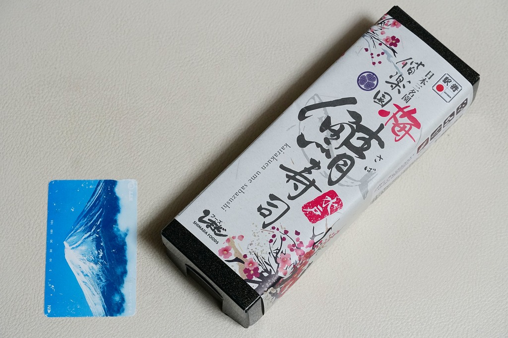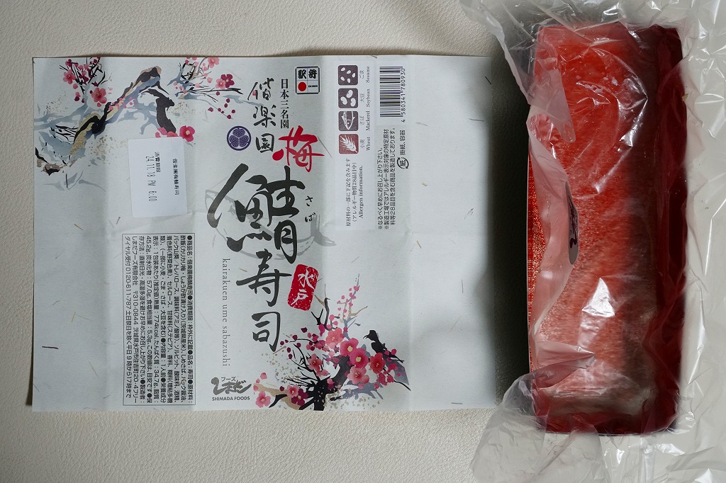 2023(令和5)年12月までに水戸駅や特急「ひたち」車内で発売か。焼かないサバの棒寿司が1本、フィルムを巻かれて紙箱に収まり、梅花と魚と商品名でデザインした掛紙を巻く。細かく刻んだ梅干しと甘酢生姜と白ごまを混ぜた酢飯は、その様々な酸味により、今では脂が乗ったり身厚にすると生臭いと言われがちなシメサバの味を中和し、爽やかさを加えていると思う。水戸の偕楽園が梅の名所であることも、水戸駅の駅弁とその商品名で使うに合う。