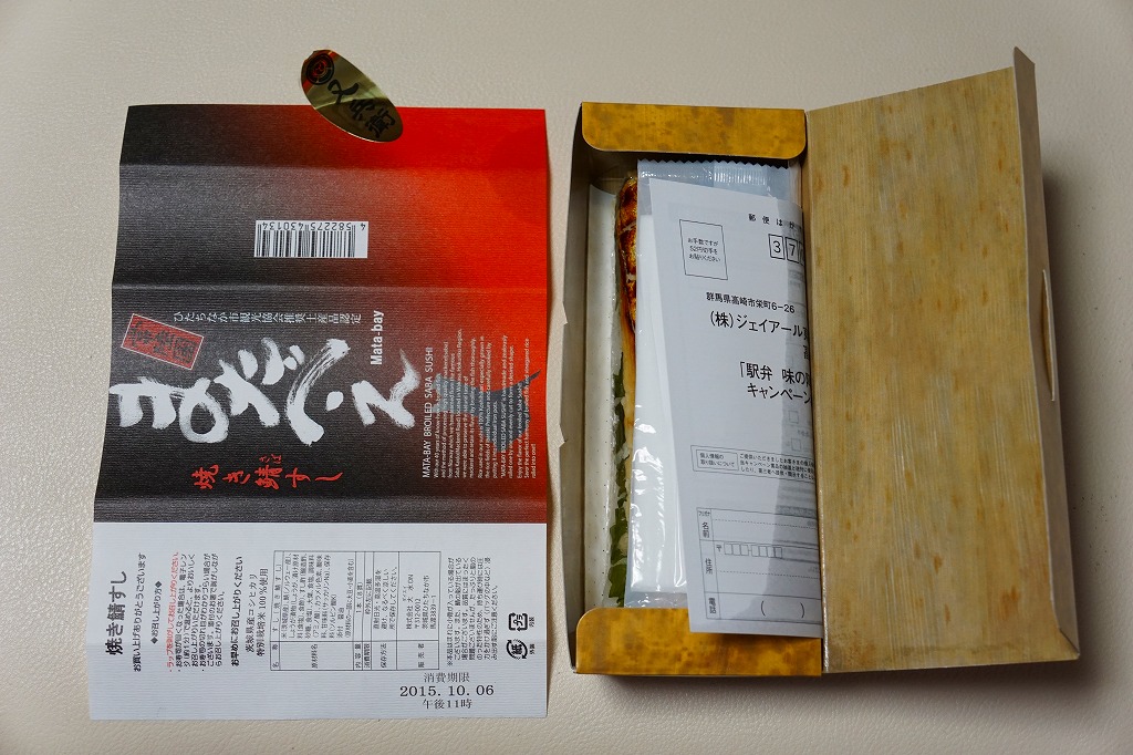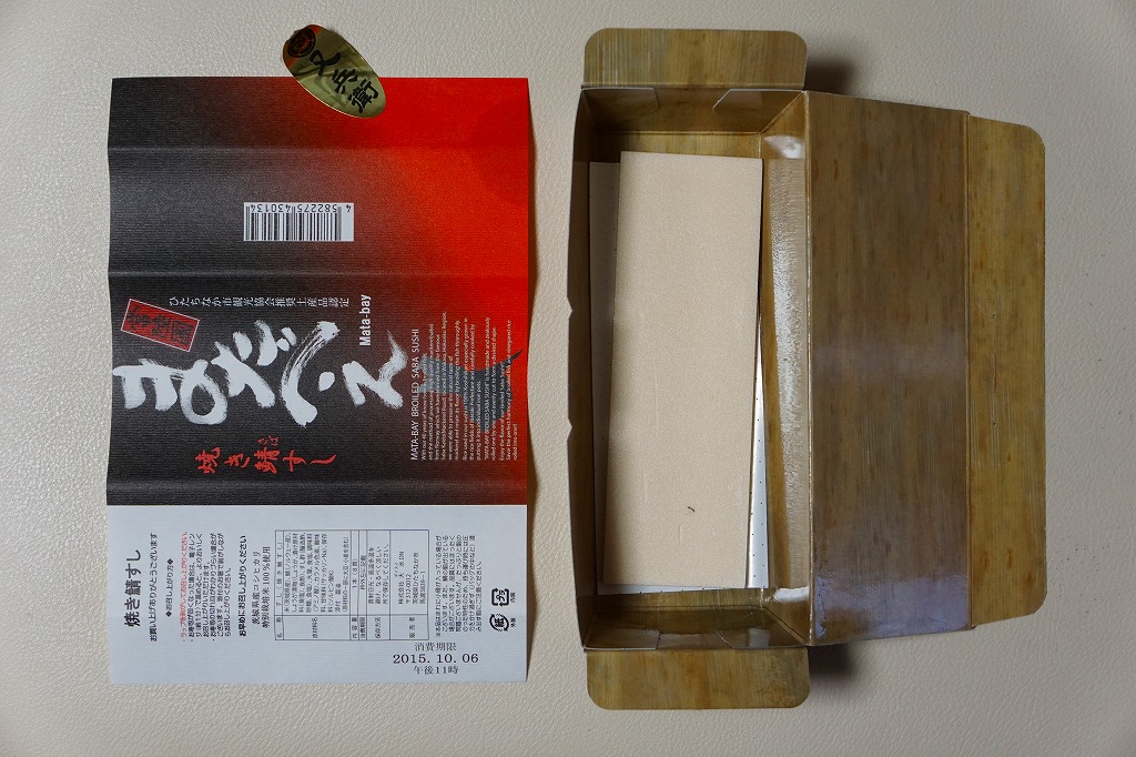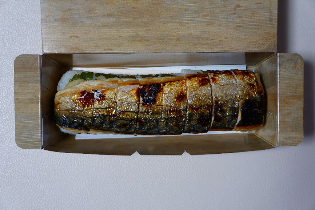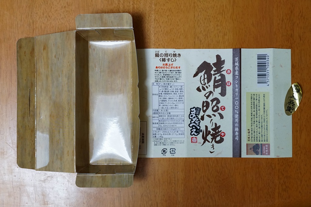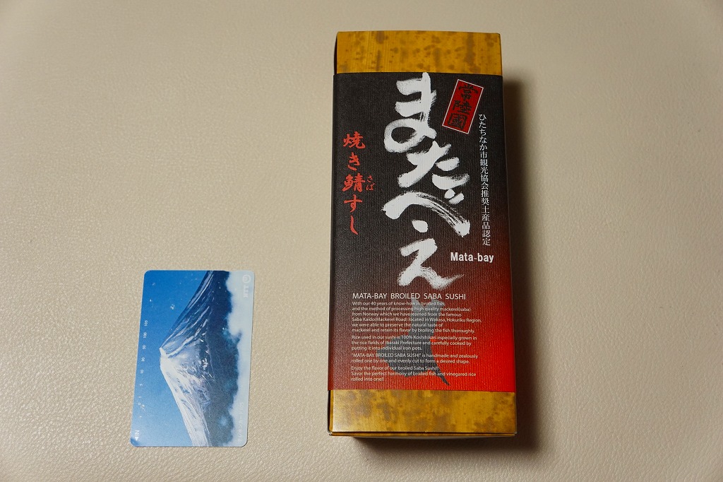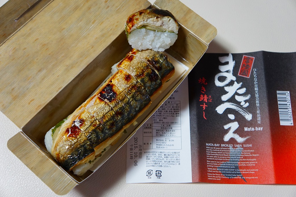 2010(平成22)年3月11日の茨城空港の開港とともに、事実上の空弁としてデビュー、2012(平成24)年までに「またべえ」の名を加えて、事実上の水戸駅の駅弁にもなった焼きサバ寿司。竹皮柄のボール紙箱に、細身で小柄な焼きサバ寿司が1本、板とともにラップでぐるぐる巻きにされて収まる。商品の宣伝文は、掛紙で英語でのみ記される。密封パックでないため、消費期限は4日間で、傾け続けると脂がしみ出る。