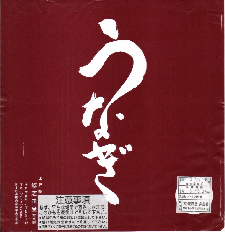 駅弁の容器でよく見られる、ひもを引くと水と生石灰の反応で暖まる容器を使う。中身は御飯の上に鰻蒲焼を2切れ載せただけ。中身を見ただけでは絶対に駅弁販売駅を当てることができない、個性なきウナギ弁当。もっとも、最近はウナギ駅弁自体が特産地を除き全国的に衰退気味であるため、このような駅弁が残っていること自体に水戸駅弁の多様さがうかがえる。味は良かった。