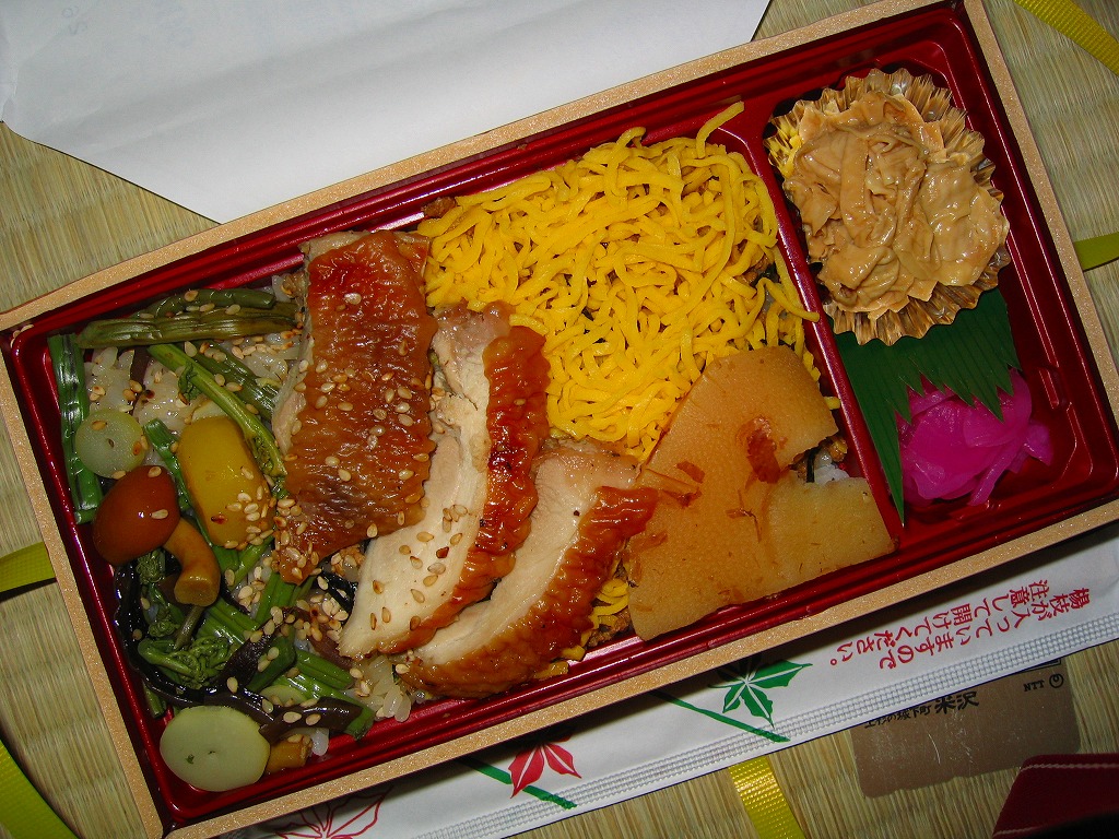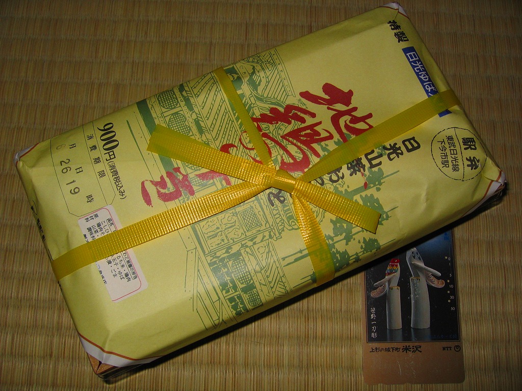 駅弁の権威は口を揃えて、幕の内弁当を食べれば駅弁屋の腕が分かると言い、確かに得てしてそのとおりなのだが、下今市では三流の幕の内と一流の鶏飯という組み合わせでこれに当てはまらない。ただ、販売人の接客姿勢は鶏飯より幕の内に近かったので、不振にあえぐ日光や鬼怒川の観光振興策の一環として良い方向へ向かえばいいなと感じた。2011年頃までの販売か。