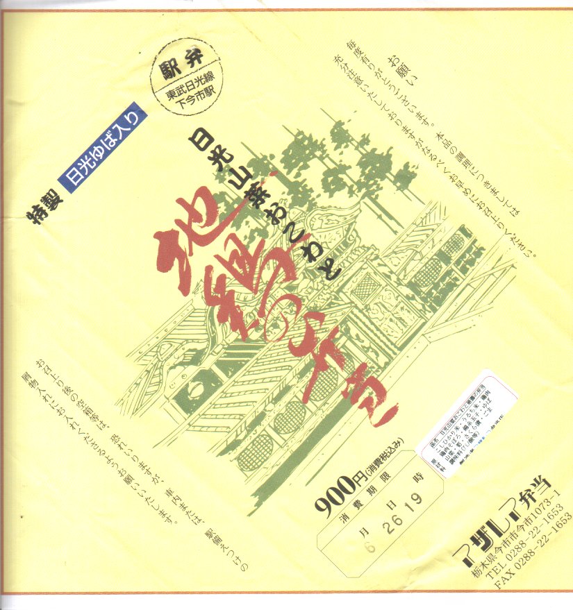私鉄駅に、それも立売で駅弁が存在するなど、それだけで貴重な存在。中身も湯葉で日光に近いことをアピールするものの、湯葉を除く御飯もおかずも見栄えや味が、まさに日光の手前(今市=いまいち)で、期待しすぎてはいけない感じ。2011年頃までの販売か。