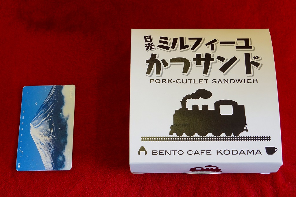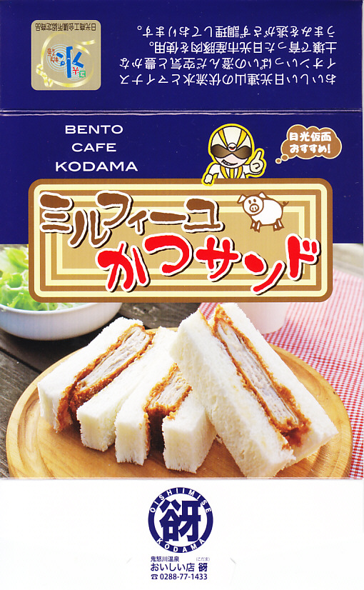 鬼怒川温泉駅の駅舎内にある飲食店「BENTO CAFE KODAMA(弁当カフェこだま)」で、2014(平成26)年7月18日または8月1日のお店の開業日から販売されている箱入りサンドイッチ。おそらく2017(平成29)年8月の東武鉄道のSL列車「SL大樹」の運行開始に合わせ、紙箱を白黒の蒸気機関車の絵柄にしたものと思われる。2020年時点でSL列車の運転日にこの絵柄の紙箱を使うという。