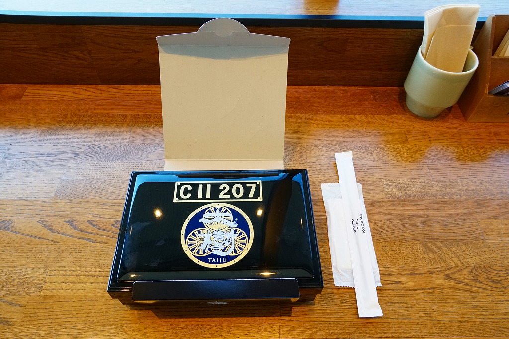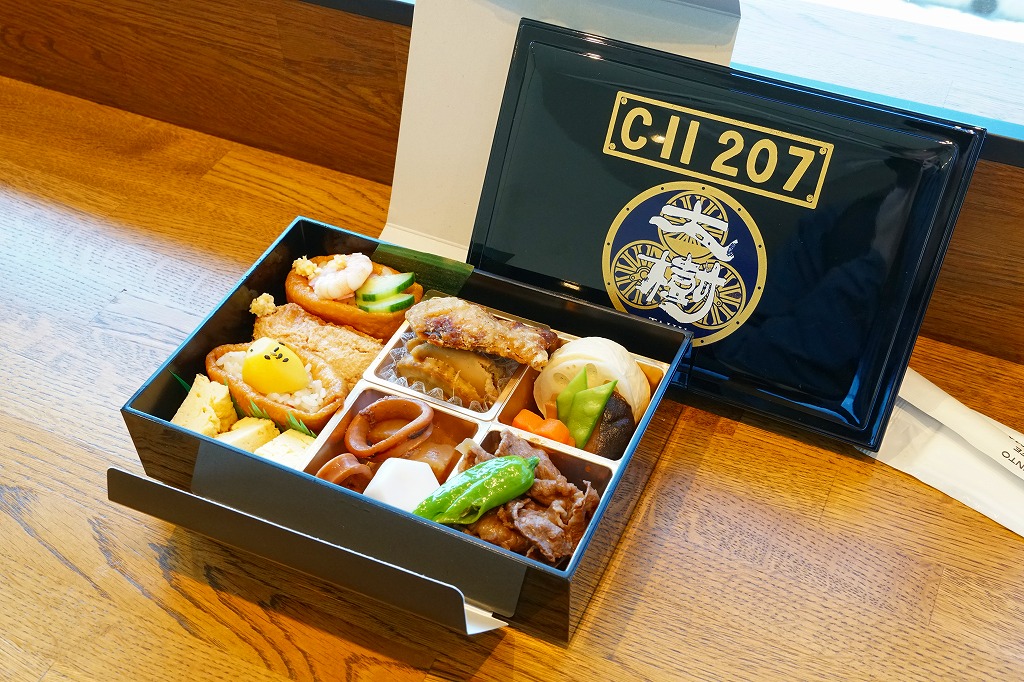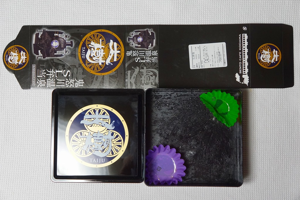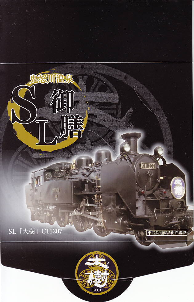 2017(平成29)年8月の東武鉄道のSL列車「SL大樹」の運行開始に合わせて発売か。SL大樹の蒸気機関車とロゴマークでデザインしたボール紙の掛紙を取ると、SL大樹のナンバープレートとヘッドマークを印刷した真っ黒なプラ容器が現れる。中身は3種のおいなりさんと玉子焼、加えて金色のトレーを4つ入れ、湯波などの煮物、牛肉煮、揚げ魚とホタテ、イカやダイコンなどの煮物という豪華版。価格は2019年の購入時で1,620円、2020年時点で1,758円、2024年時点で2,268円。
