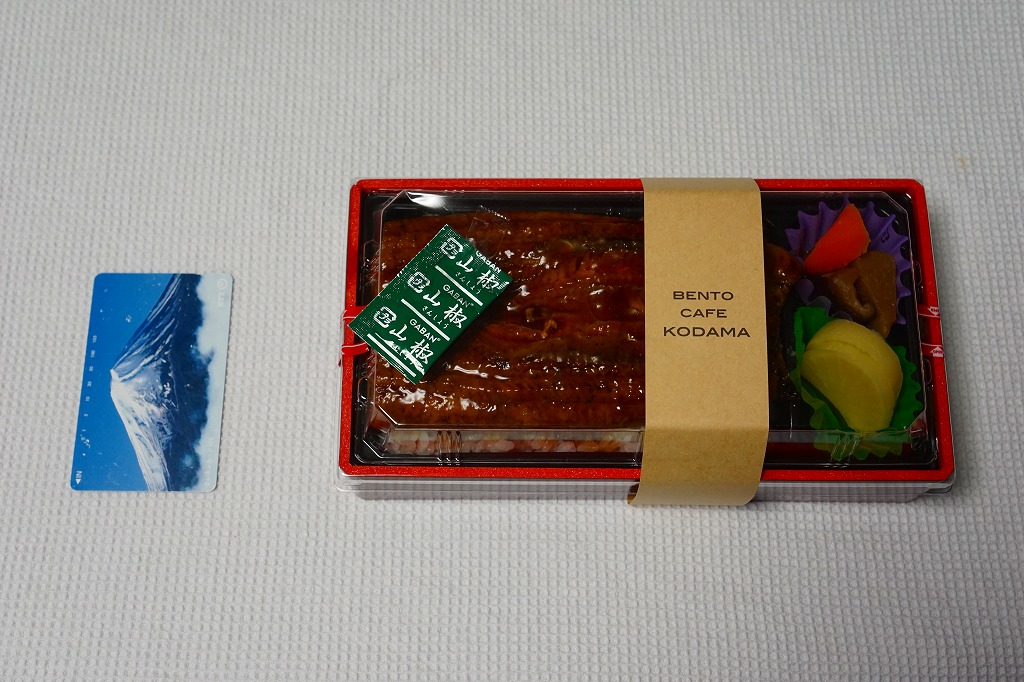 鬼怒川温泉駅で下記の駅弁を売る店舗で買えた鰻重。2017(平成29)年11月の訪問時にも売られていたが、今回は容器にカフェの名を記した紙帯を巻き、少し駅弁らしく見えたので買ってみた。白飯にウナギ蒲焼きを載せ、ニンジンなどの煮物とたくあんを添える、ただの鰻重。カフェのコンセプトや鬼怒川温泉との関連を感じられない。ウナギは特に個性のない、スーパーで買える真空パック品のようなもの。価格は2018年の購入時で1,295円、2020年時点で1,458円。2021年までの販売か。