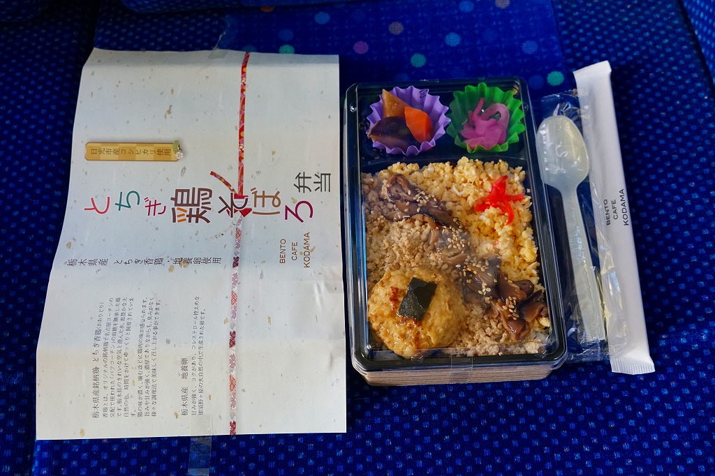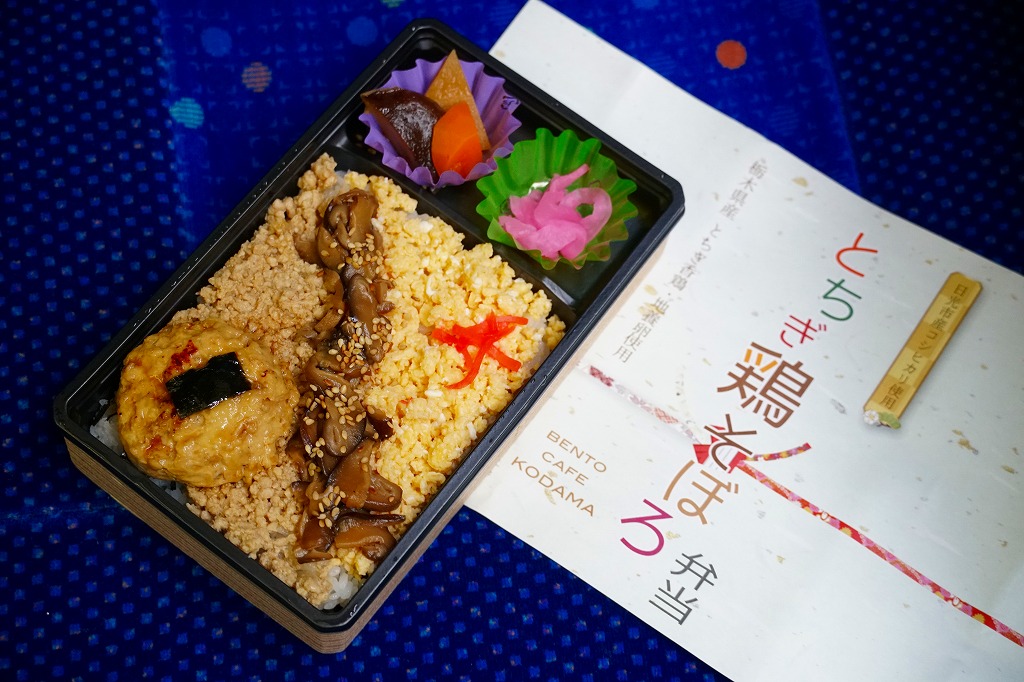 2018(平成30)年5月1日に発売。白飯を鶏そぼろと炒り卵で覆い、シイタケ煮で仕切って鶏つくねと紅生姜を置き、煮物と漬物を添える。内容は普通の鶏飯駅弁も、栃木県産銘柄鶏の「とちぎ香鶏」を使うという鶏肉は、水気が豊かなこともあり味付けも食感も柔らかめで、普通の駅弁とはひと味違うぬくもりがあった。1年間ほどの販売だった可能性がある。