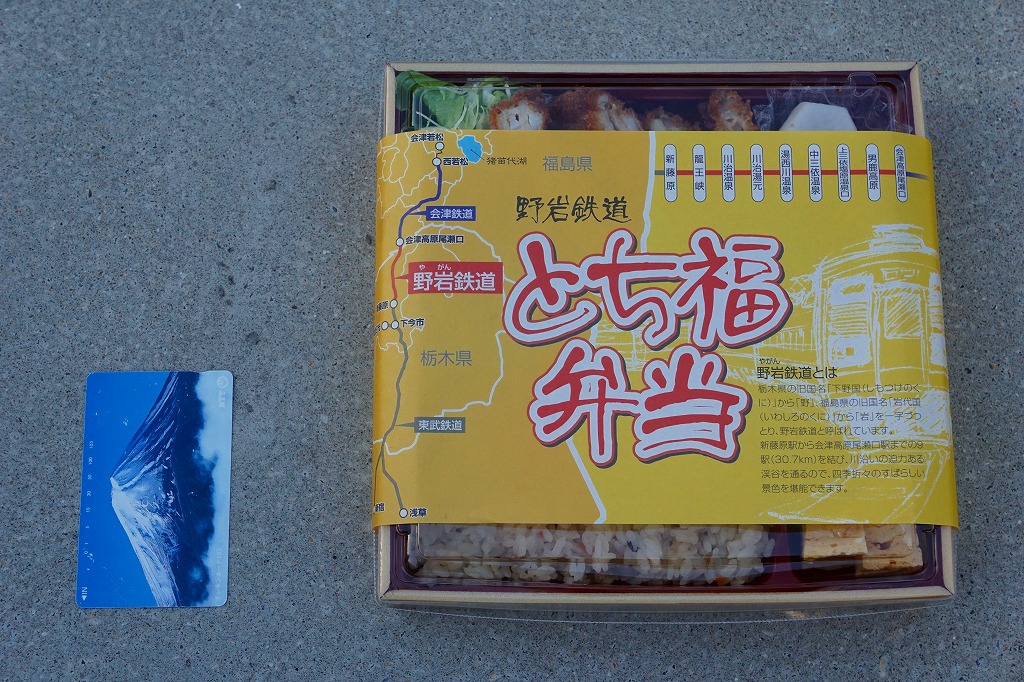 2012(平成24)年3月に、野岩鉄道の団体客向け予約専用弁当として発売。2015(平成27)年頃から、野岩鉄道でなく東武鉄道の鬼怒川温泉駅のカフェで買えるようになった模様。掛紙には野岩鉄道の位置図と路線図と解説文が描かれる。中身は五目飯にミルフィーユかつ4切れ、湯波と玉子焼、キャベツとミニトマトと煮物など。調製元の鬼怒川温泉駅弁と同じようなものが入っていた。野岩鉄道のイベントで売られることがある模様。価格は2017年の購入時で1,080円、2020年時点で1,296円、2024年時点で1,728円。