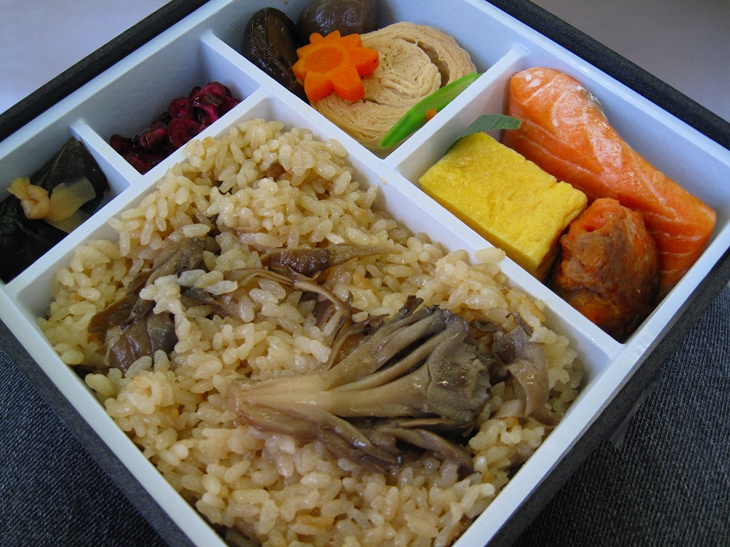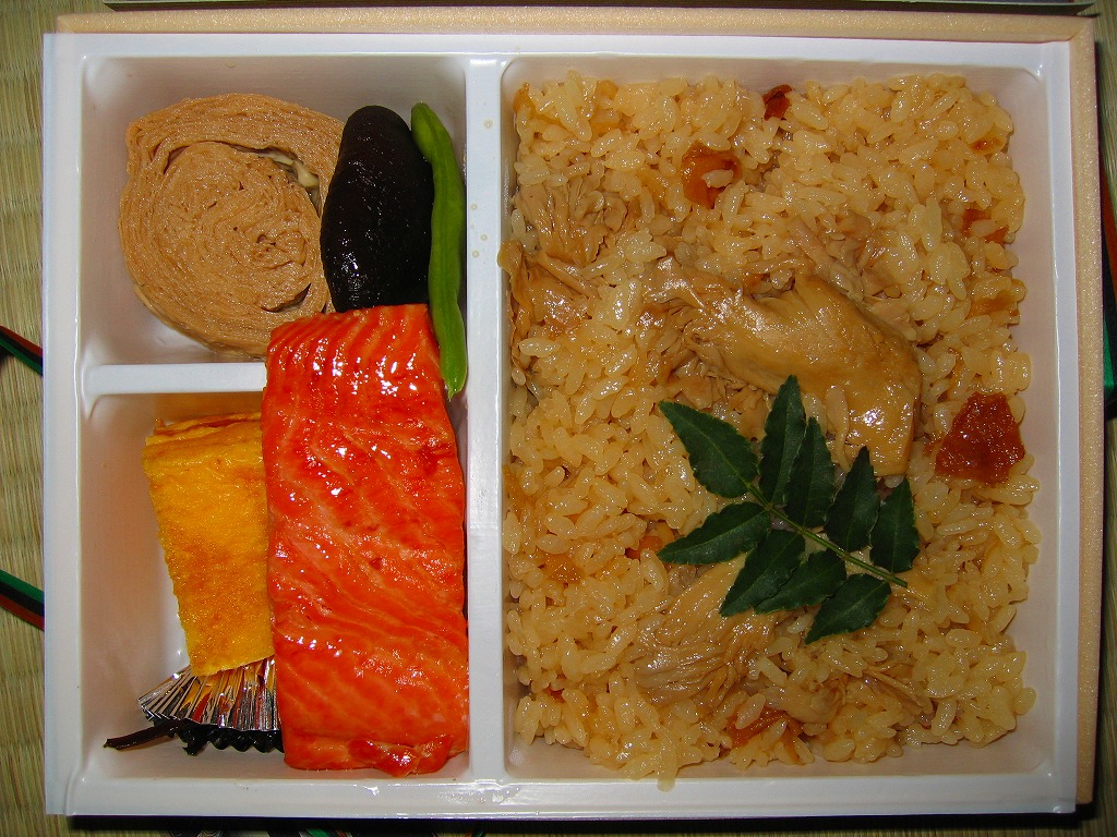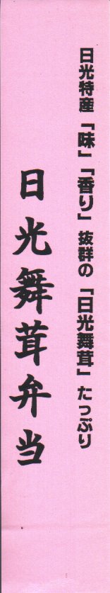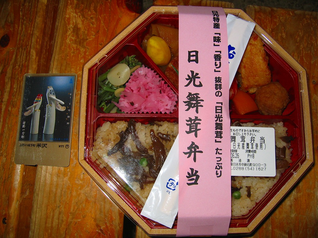 発泡材枠にトレーを接着した底の浅い八角形の容器に、セロテープで駅弁の名前を記した帯を貼る。中身は日光舞茸の茶飯にかんぴょうと、山菜や薩摩揚や蒲鉾や玉こんにゃくや海老など。味はなんとなく団体客向け旅館の朝食バイキングのような感じだが、御飯もおかずもとても柔らかく、元気な高齢者という東武日光駅の主要客層に配慮されたと思われるもの。なお、2010年現在でこの駅弁は販売されていないとのこと。