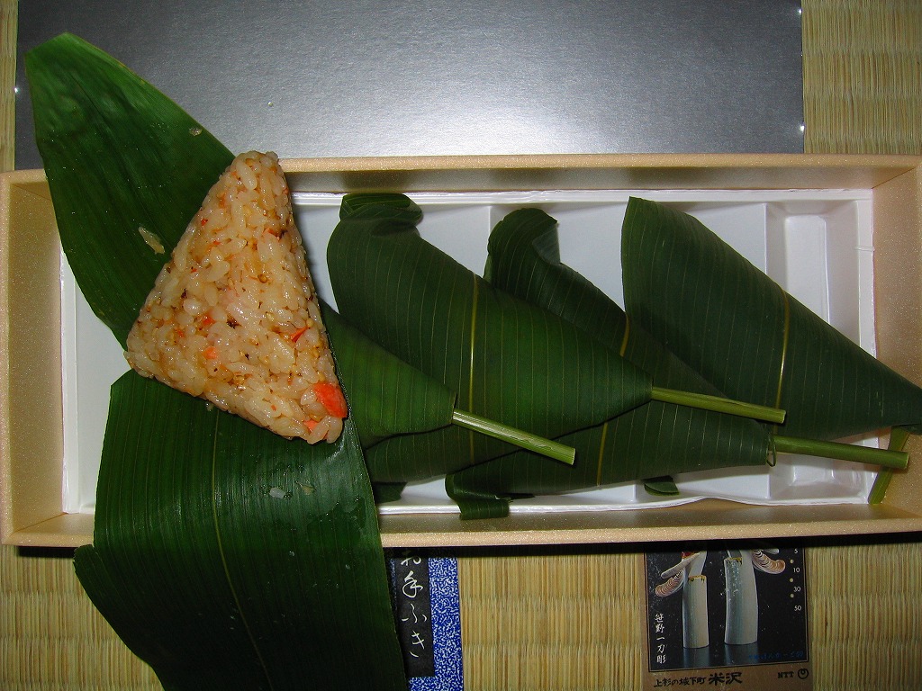 長方形の容器に、三角形の笹巻きが5個列ぶ。中身は1個が鱒鮨、2個が白い酢飯にマスやシイタケやミツバなどを混ぜたもの、2個が茶色い酢飯にやはりマスやシイタケやミツバなどを混ぜたもの。肌触りの良い笹の葉は、ゴムやテープなどで留めることなく具にぴったり巻かれており、どうやって巻いたのか、どうすればきれいに取れるのかよく分からない、熟練の技を感じた。価格は2004年時点で750円、2014年4月の消費税率改定で780円、2020年時点で830円、2022年時点で880円、2023年時点で930円、2024年時点で980円、2025年時点で1,080円。