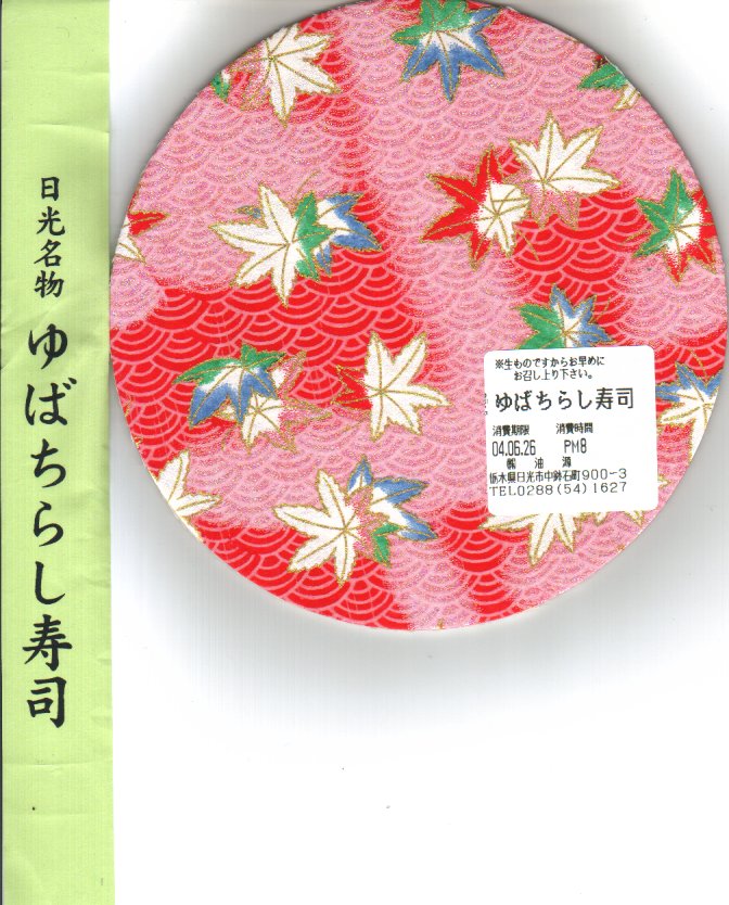 2004(平成16)年6月26日に購入した、東武日光駅弁のふた。食品表示の位置を除き、上記の2020年のものと見た目も容器も内容も風味も、見事に変わらない。ひっそり、しっかり、売られている。