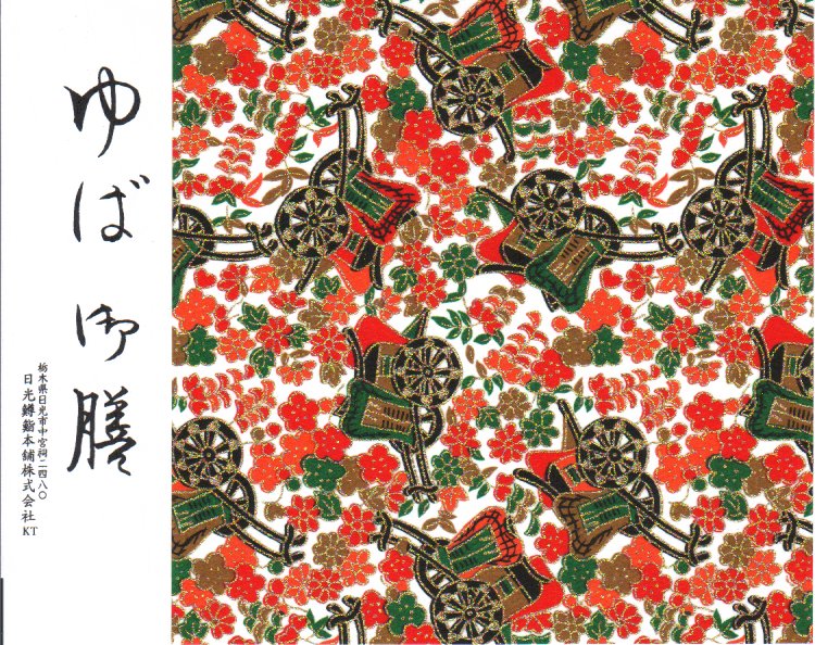2004(平成16)年6月26日に購入した、東武日光駅弁の掛紙。上記の駅弁「ゆば御膳」の、2004(平成16)年6月時点での姿。掛紙の絵柄は変わらず、これに添える紙片に食品表示がなかった。中身は上記の2009年や2018年のものと異なり、湯波の混ぜ御飯にマス焼、玉子焼、昆布、インゲンとシイタケの煮物、湯波巻を添えていた。