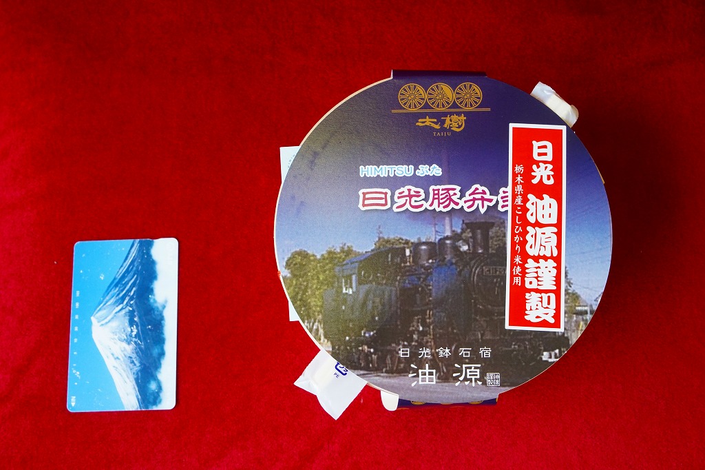 東武鉄道のSL列車「SL大樹」の運行開始に合わせて、2017(平成29)年8月に発売。6月に東京都内の東武百貨店池袋店で先行販売。丸い容器にかけた丸い掛紙には、SL大樹の写真やロゴマークが使われる。茶飯を淡色の豚焼肉で覆い、3枚のレンコン、蒸気機関車のナンバープレートの焼き印入り玉子焼、煮豆、湯波などでまた覆う。食べれば落ち着いた、副菜の多い豚焼肉丼。豚を二度も名乗る駅弁の名前と違い、見た目で豚肉が全然目立っていない。2020年までの販売か