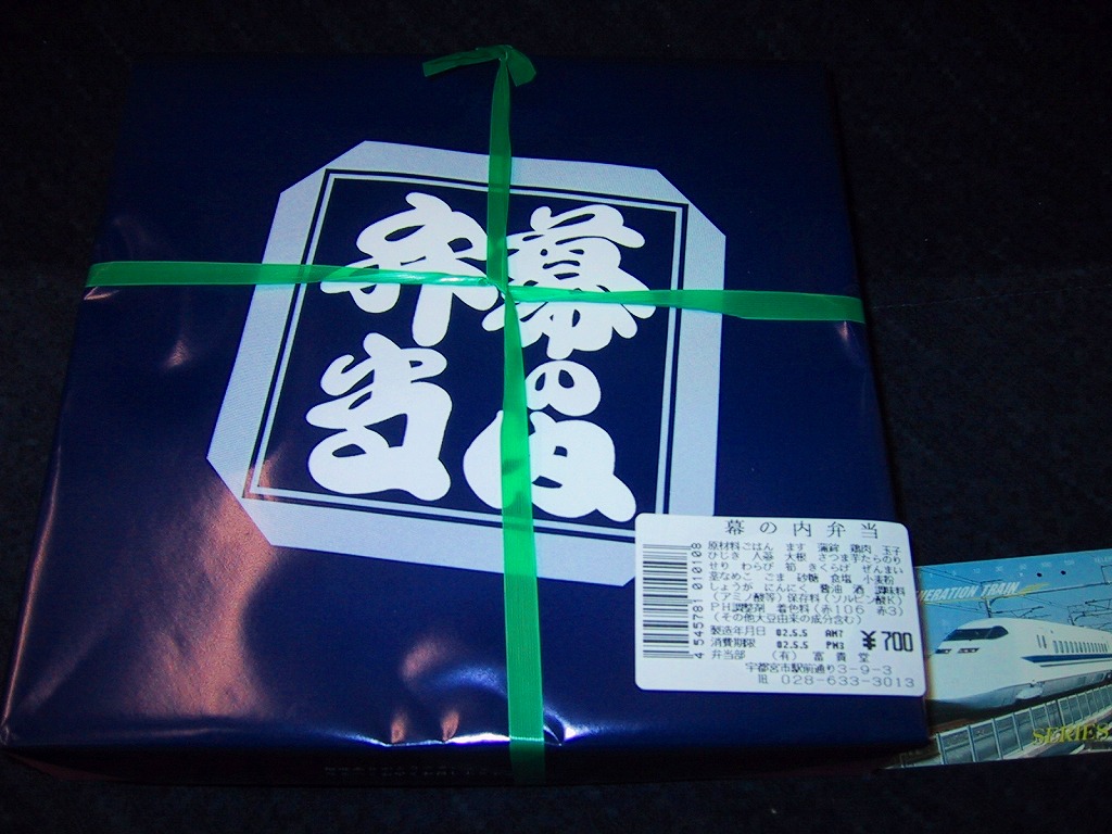 2003(平成15)年7月12日に購入した、宇都宮駅弁の掛紙。内容と価格は上記の2006年のものと同じ。この当時は駅弁らしく、専用の掛紙を使い、容器もあからさまな汎用の市販品ではなかった。中身は変わらない。2006年や2022年のものと、値段まで変わらない。