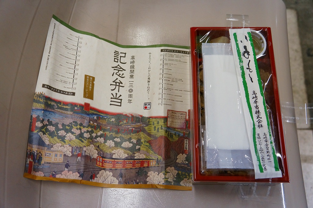 高崎駅は2005(平成17)年のJR東日本「ステーションルネッサンス」、言い換えれば駅の商業施設化と出改札の縮小整理に伴う構内改装に伴い、かつては乗換通路上の目立つ位置にあった駅弁屋台が一掃されてしまった。とりあえず在来線改札の外にひとつ、駅弁売店を見つけてこれを買えたが、これで駅弁の駅離れや街弁化がまた進んだはず。