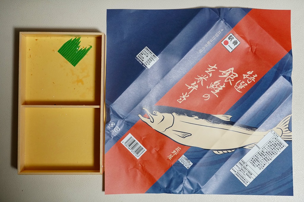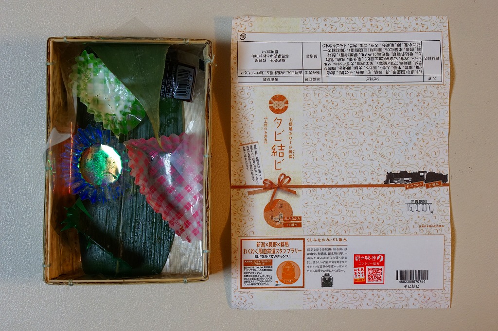 肉の薄毛具合は気になったが、風味と食感はまあまあ柔らかい。そんな中身よりも、掛紙のデザインが良い。開業から現在までの主要年表と、全線開業当時の錦絵で、美観と資料性を兼ね備えた。また、記念の駅弁にしてはずいぶんと価格が安い。