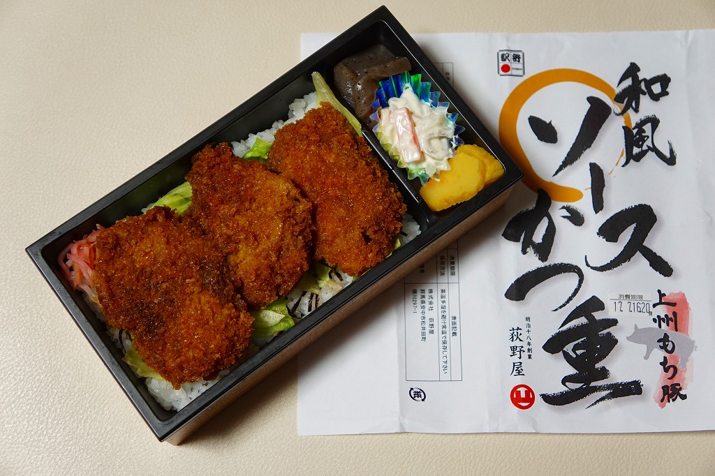 2013(平成25)年までに高崎駅で発売か。調製元は高崎駅でなく横川駅の駅弁屋。長方形の容器に白飯を詰め、レタスを敷き、トンカツのソース漬けで覆い、紅生姜、こんにゃく、こんにゃくサラダ、たくあんを添える。特徴が薄い分、内容も味も可もなく不可もなし。調製元が誇る「峠の釜めし」との関連性は、何もない。2021年までの販売か。
