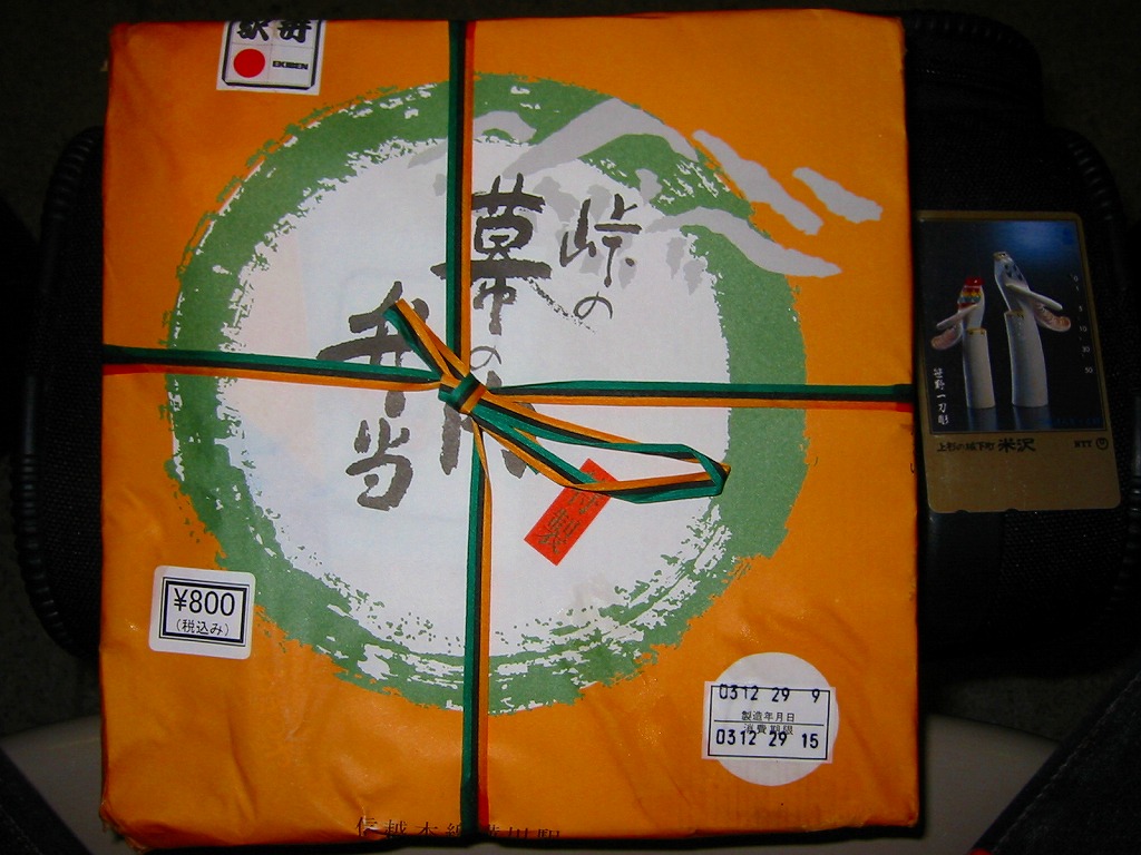 横川駅の幕の内弁当。意味もなく「峠の」という枕詞が付くのが横川駅弁らしい。中身は俵飯に鶏唐揚や焼き魚や煮物が入る普通の幕の内駅弁で、その内容も味も格別なものはないが、そこはやはり横川駅らしく、掛紙のデザインを中心にパッケージからは旅のお供の駅弁らしさが感じられる。