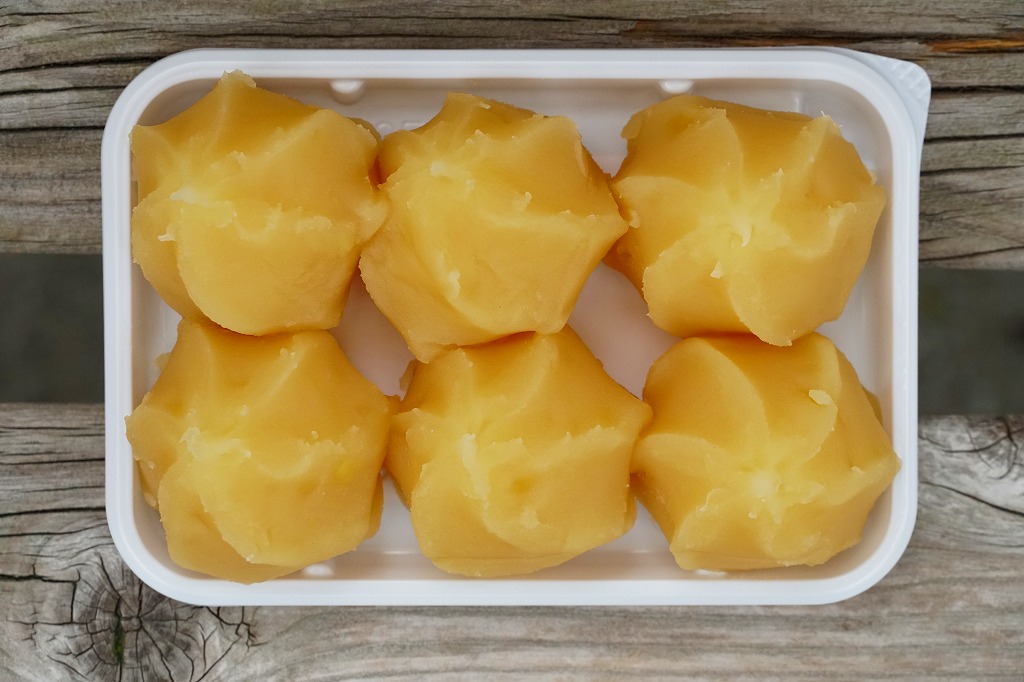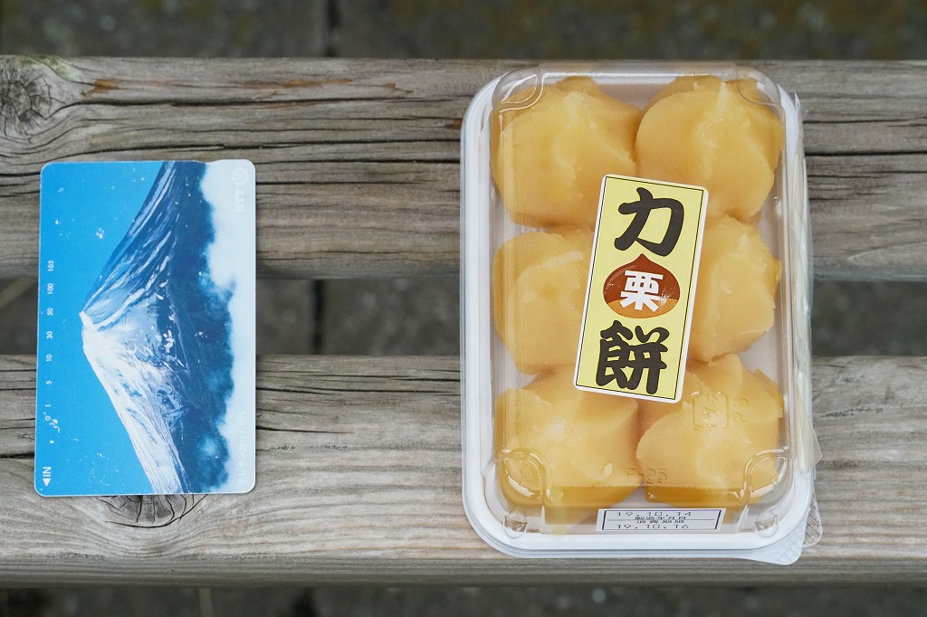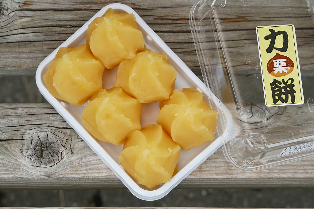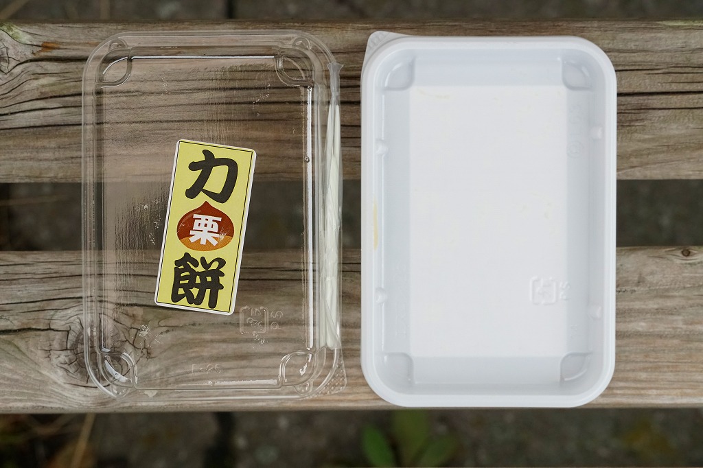 商品名は「碓氷峠の力餅「栗餡」」とも。上記の商品「碓氷峠の力餅」の、秋限定の栗バージョンらしい。容器や中身の構造は同じで、あんが栗色になり、商品名シールにも栗の文字と絵柄がある。味も栗っぽいスイーツ。