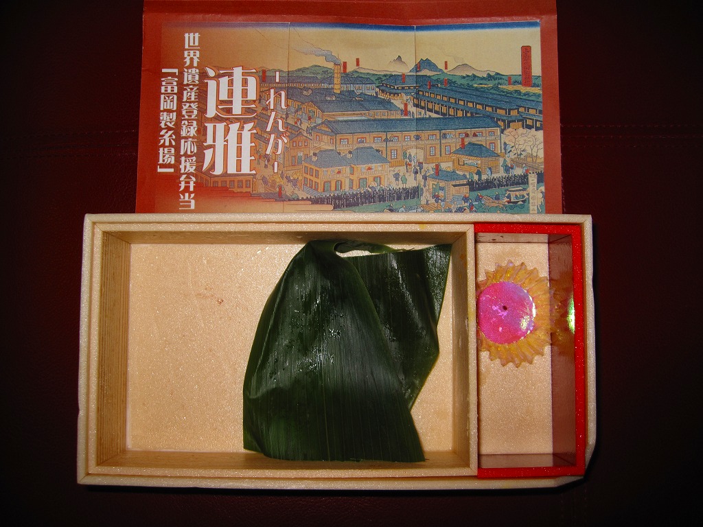 2009年10月と2010年4月の東京駅での東日本縦断駅弁大会で販売された横川駅弁。3日前までの予約が必要な商品として、2009年の夏には駅弁屋のドライブインで登場していた模様。「「富岡製糸場」世界遺産登録応援弁当」の副題が付く。