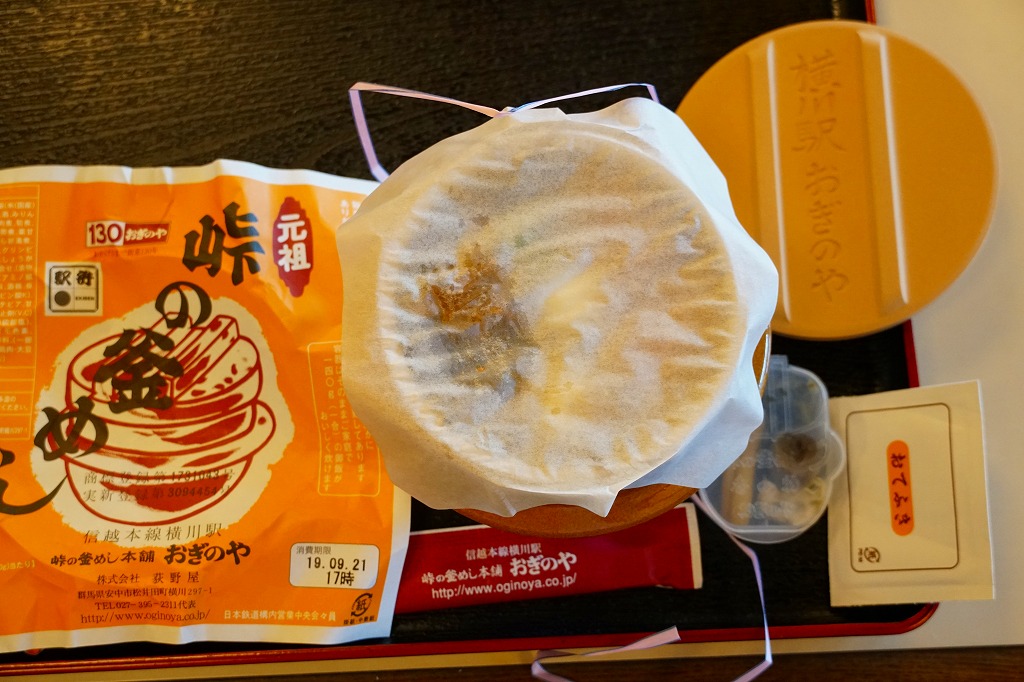 上記の駅弁「峠の釜めし」の、2019(令和元)年時点での姿。上記の2025年のものと、まったく変わらない。値段はだいぶ変わった。
