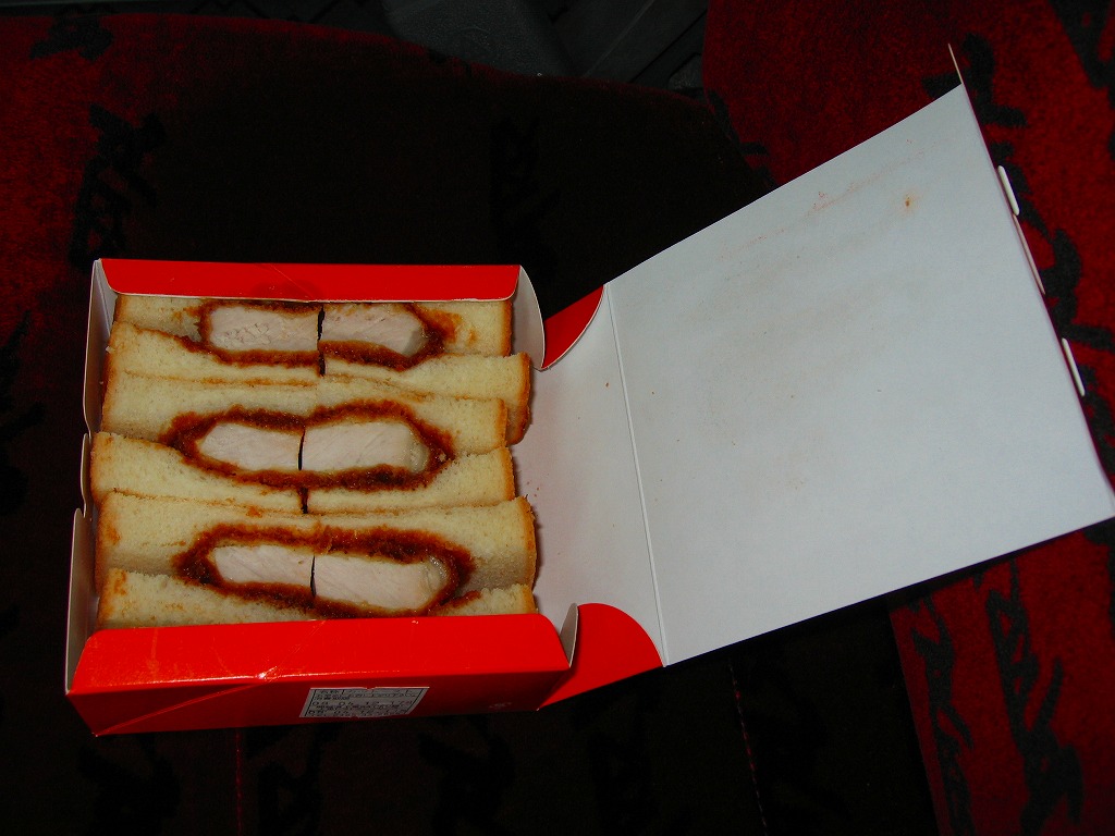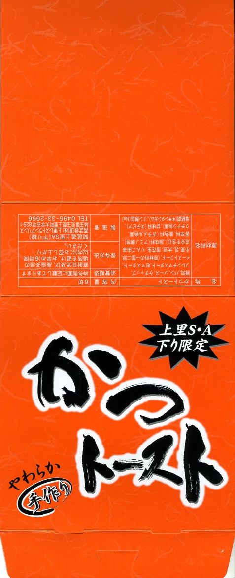 上里サービスエリアでも下り側のみで限定販売されている、オレンジ色の紙箱に入ったカツサンド。中身は軽く焼いた食パンでソースに漬けた厚みのあるヒレカツを挟んだだけのものが3切れ6ピース。売り場にて「やわらか」「手作り」「数量限定」「大人気!」と蛍光色で煽る商品の実力は、昭和の昔の硬くて臭いカツサンド。駅弁ならとっくの昔に淘汰されていそうなものだが、どうもここでは一部で渋い人気を得ているB級グルメ。
