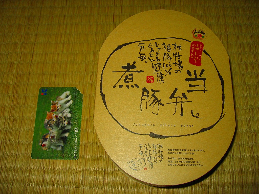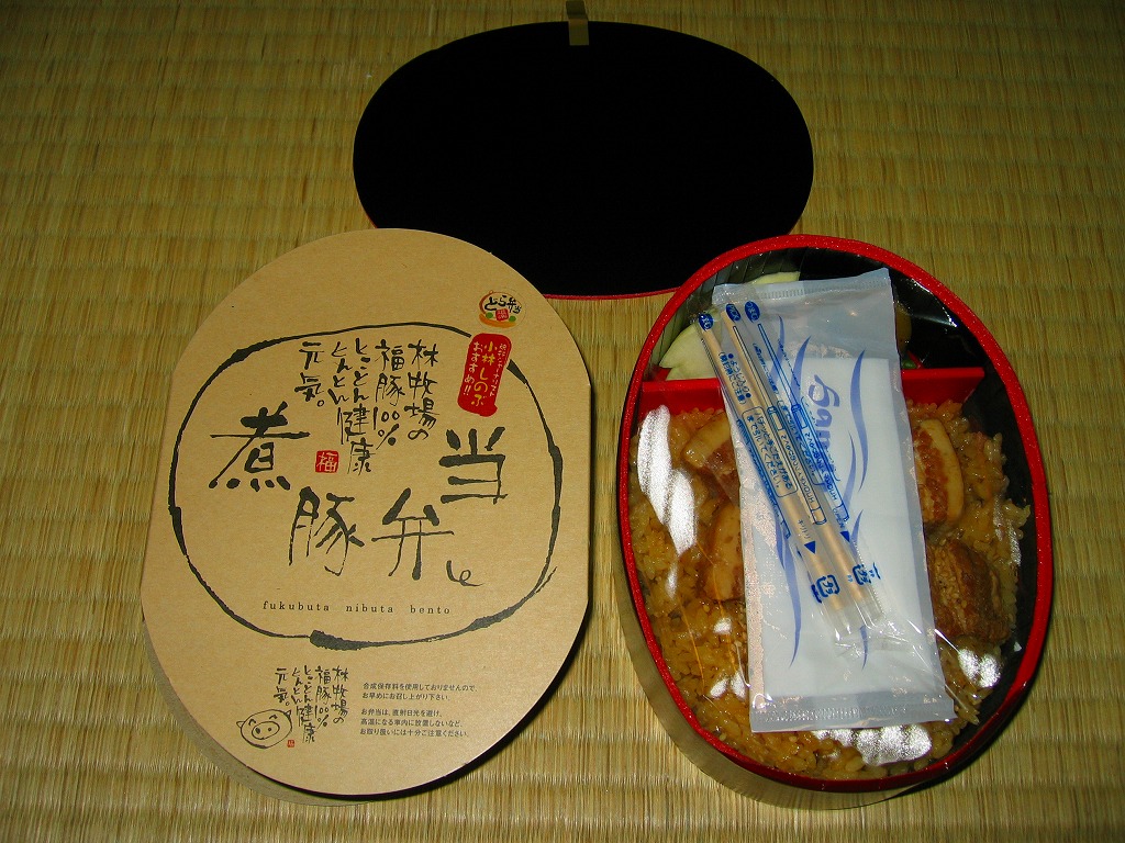 製造者を「調製元」と印刷する点も駅弁らしいのは、駅弁の女王とも呼ばれる旅行ジャーナリストが監修したためか。その調製元は群馬県前橋市の赤城山麓で「福豚」が売りの牧場直営レストランで、このどら弁当にもその肉が使われている。2009年頃までの販売か。